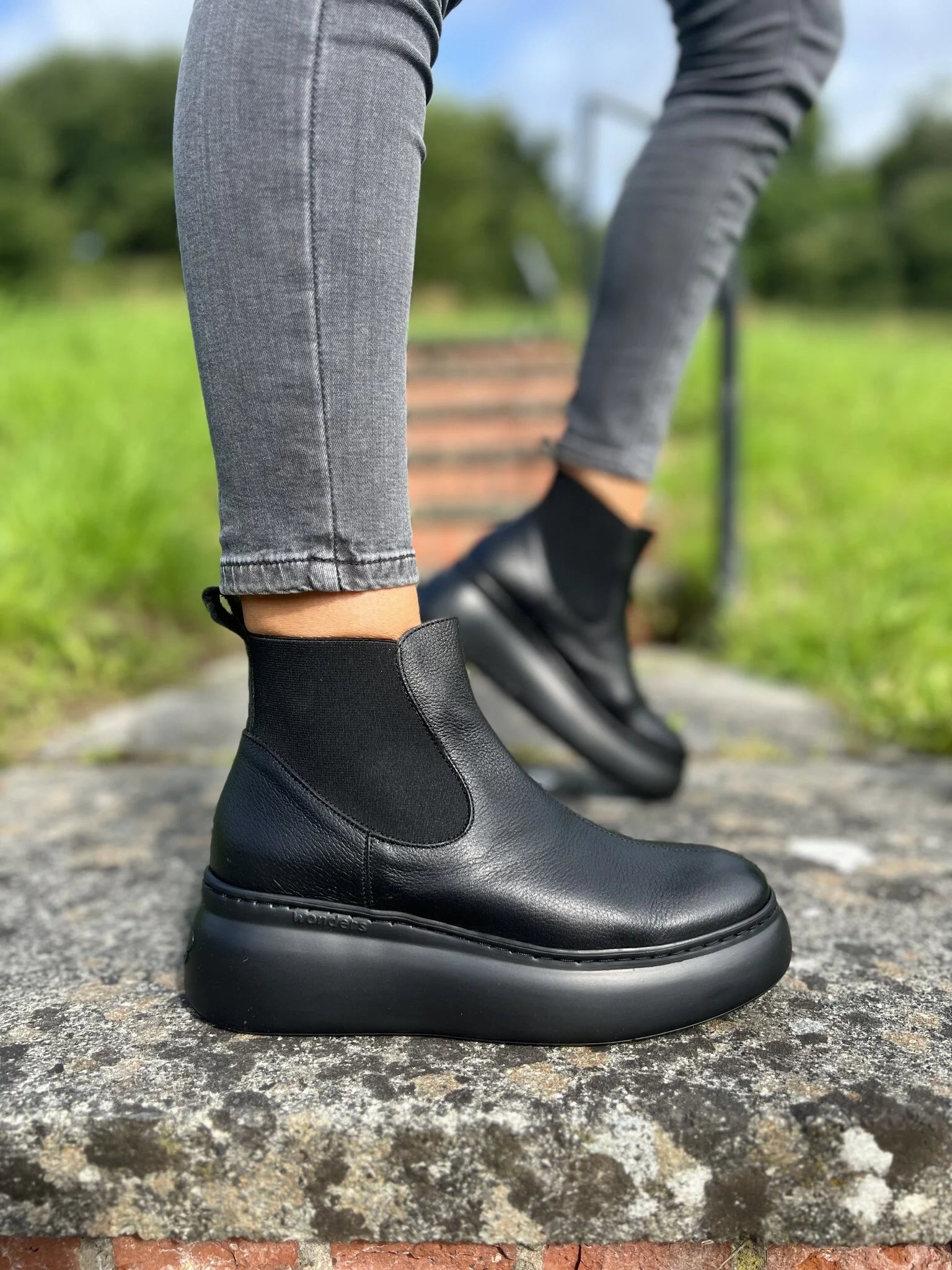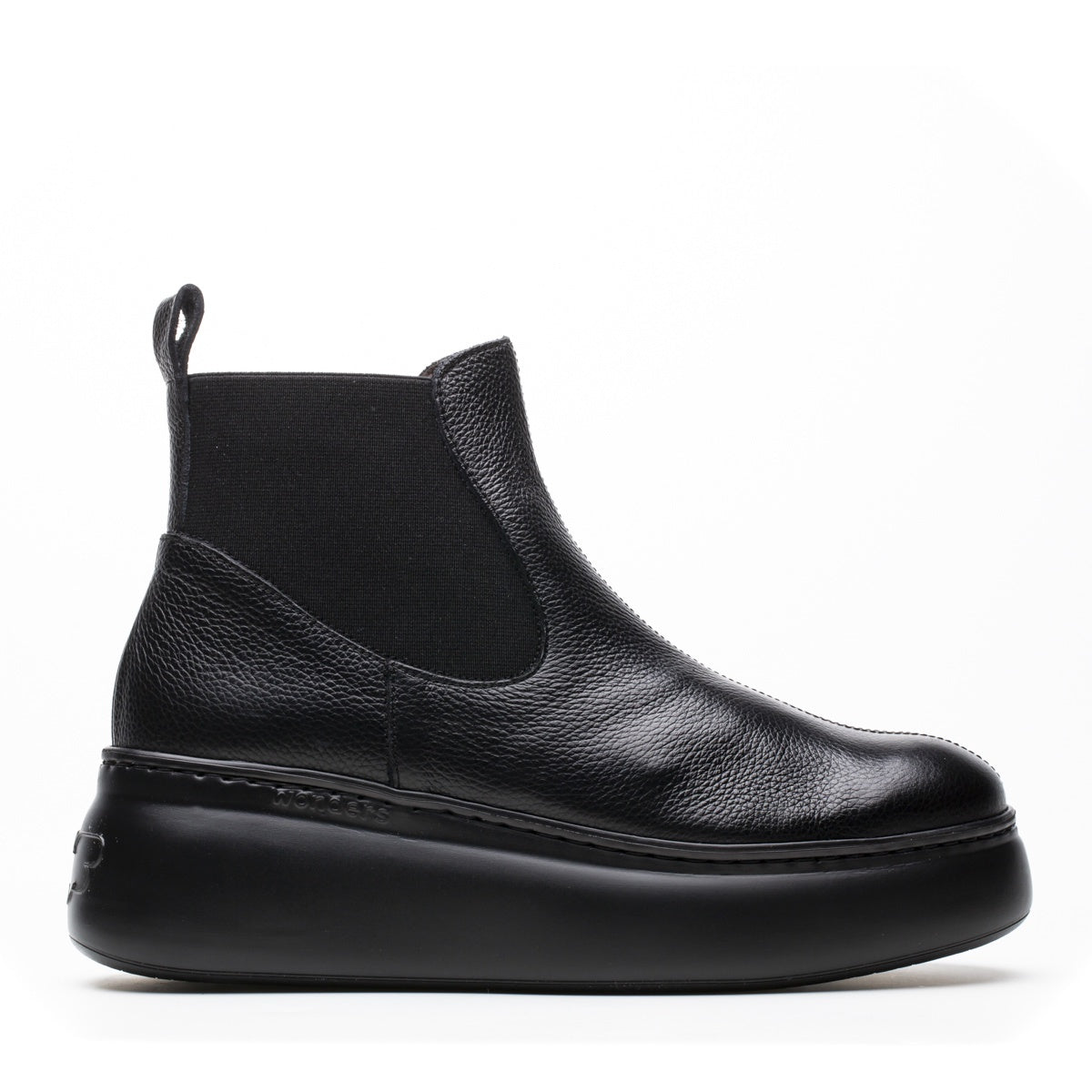 Experience the epitome of style, versatility, and comfort with the AIDA Chelsea ankle boot by Wonders. Meticulously crafted from supple grain leather and featuring dual elastic panels, this boot effortlessly combines fashion with practicality. The ultra-lightweight flatform rubber sole adds a modern touch, providing all-day comfort. Made with love in Spain.