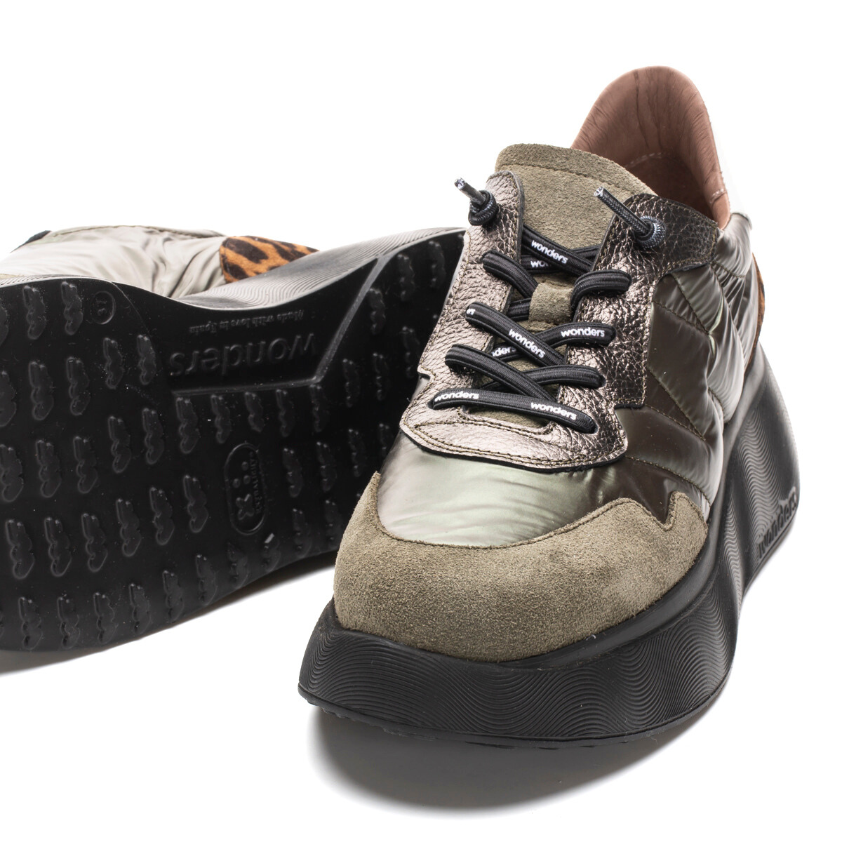 ALANUI by Wonders merges bold details with all-day comfort, showcasing metallic quilted fabric, leopard-print accents, and a chunky Wonders Fly® rubber outsole that’s ultra-light yet striking. Pair it with jeans, athleisure, or dresses for a chic dose of edgy glamour. Made with love in Spain.