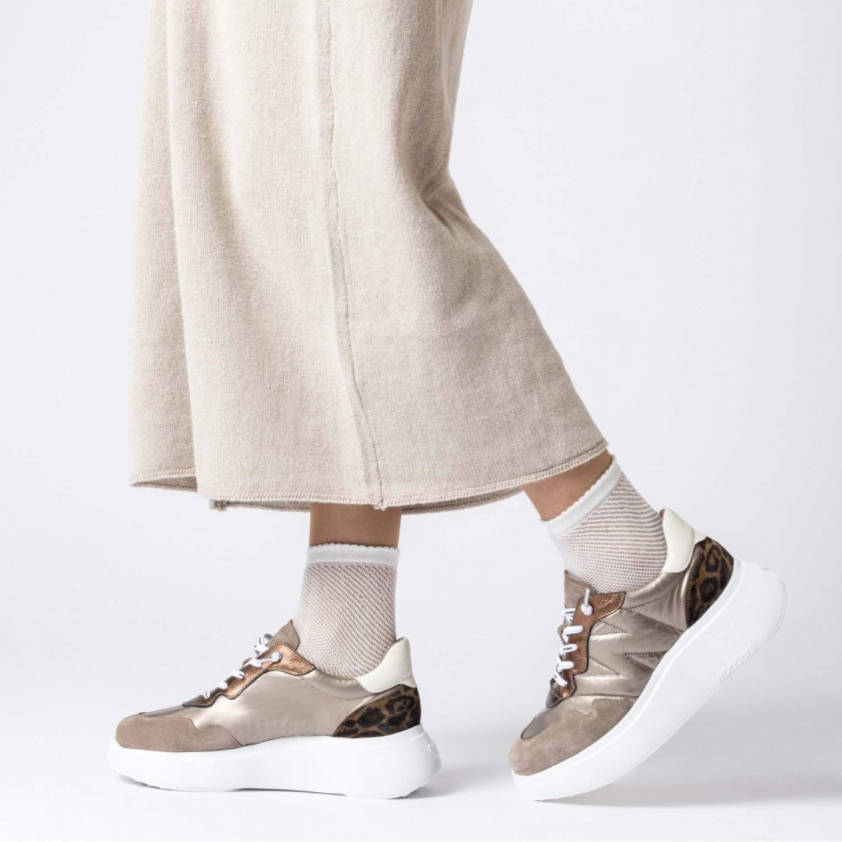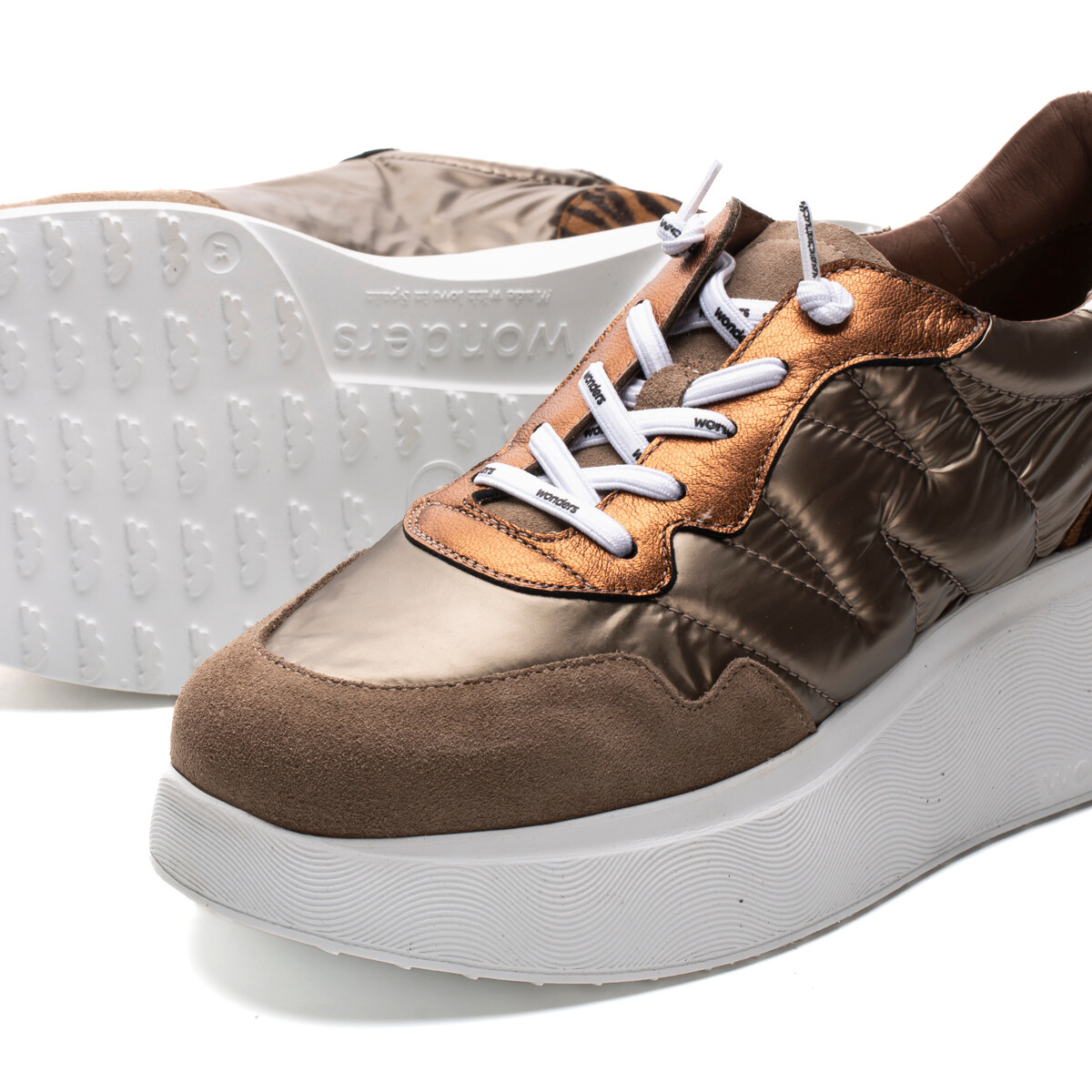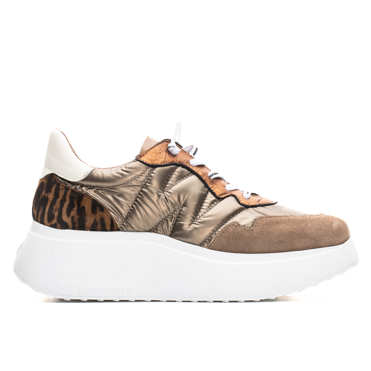 ALANUI by Wonders merges bold details with all-day comfort, showcasing metallic quilted fabric, leopard-print accents, and a chunky Wonders Fly® rubber outsole that’s ultra-light yet striking. Pair it with jeans, athleisure, or dresses for a chic dose of edgy glamour. Made with love in Spain.