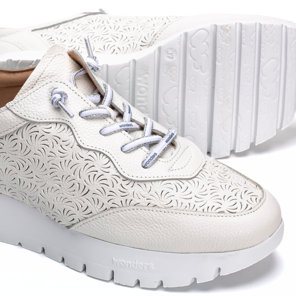 No wardrobe is complete without a Wonders sneaker! Renowned for superior comfort and style, the ALLEGRA sneaker by Wonders will be your new instant favourite this season. Made from premium leather with eye-catching cutout designs, this ultra-lightweight sneaker feels like walking on clouds. It features a secure elasticised lace-up fit and a removable Memory Gel insole for extra support. Pair it with jeans, leggings, or shorts for any occasion. Made with love in Spain.