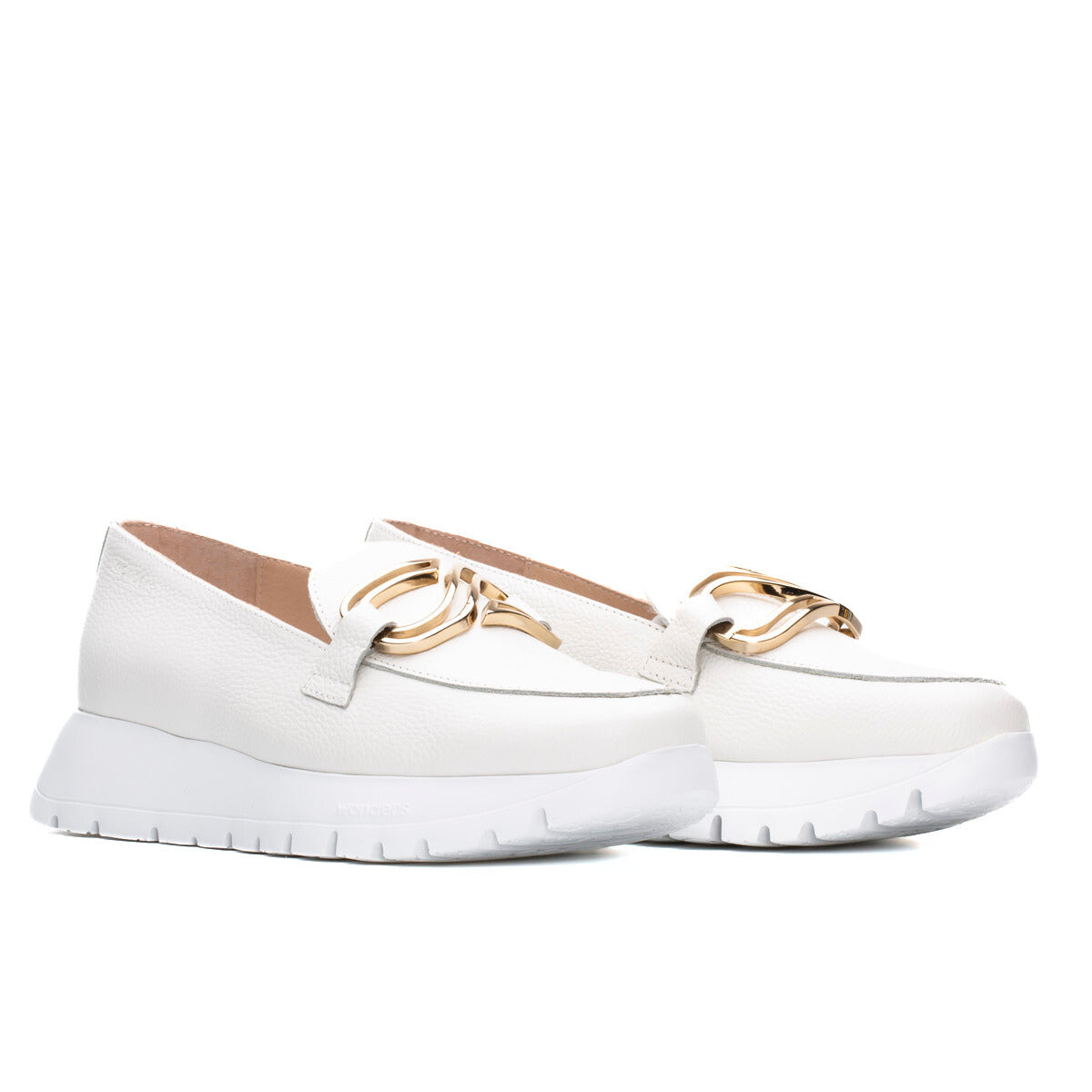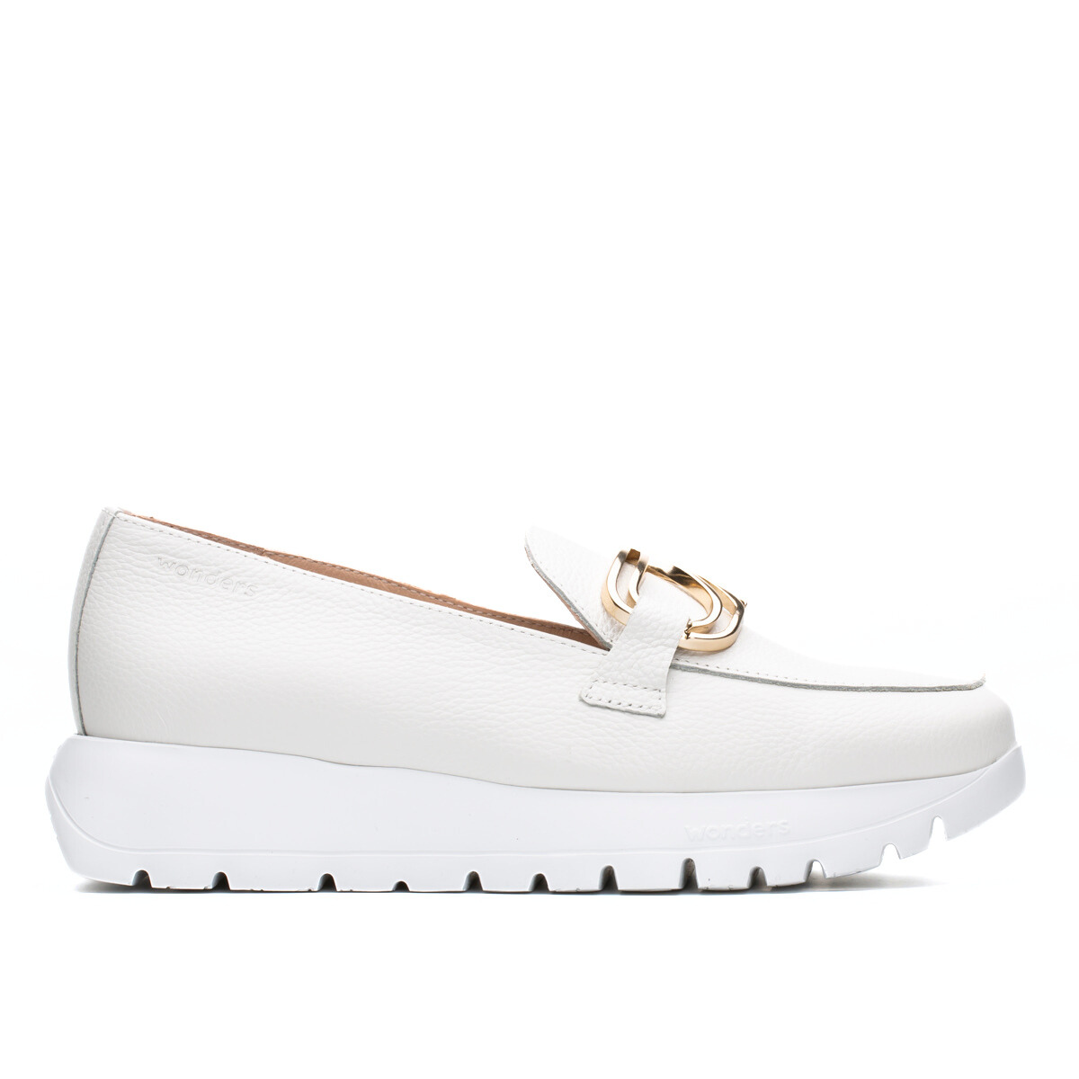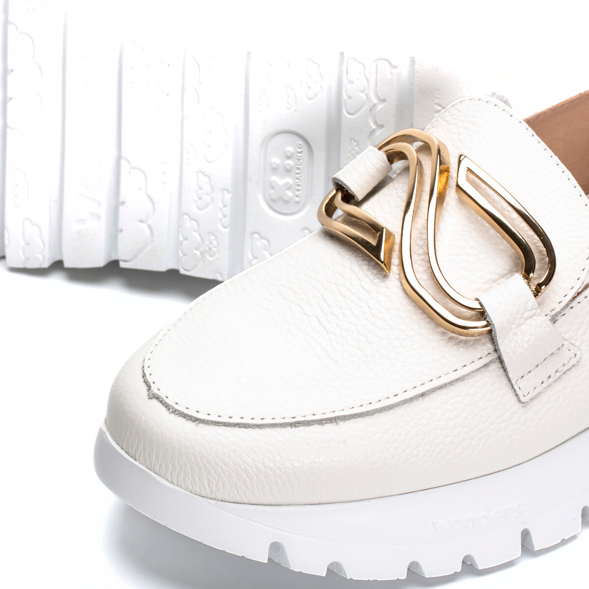 Introducing the AMALFI by Wonders—a timeless favourite known for its great fit, versatility, and cloud like comfort. Crafted from supple leather and featuring a chic metallic chain on the vamp, this ultra-lightweight platform loafer includes WondersFly technology and a removable memory gel insole. Perfect with tailored pants, dresses, or casual jeans, the AMALFI effortlessly elevates your look. Made with love in Spain.