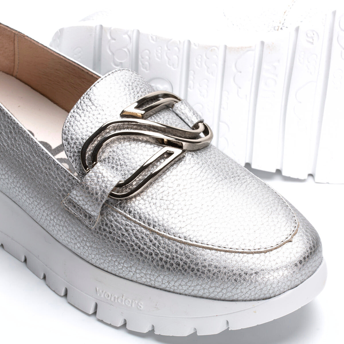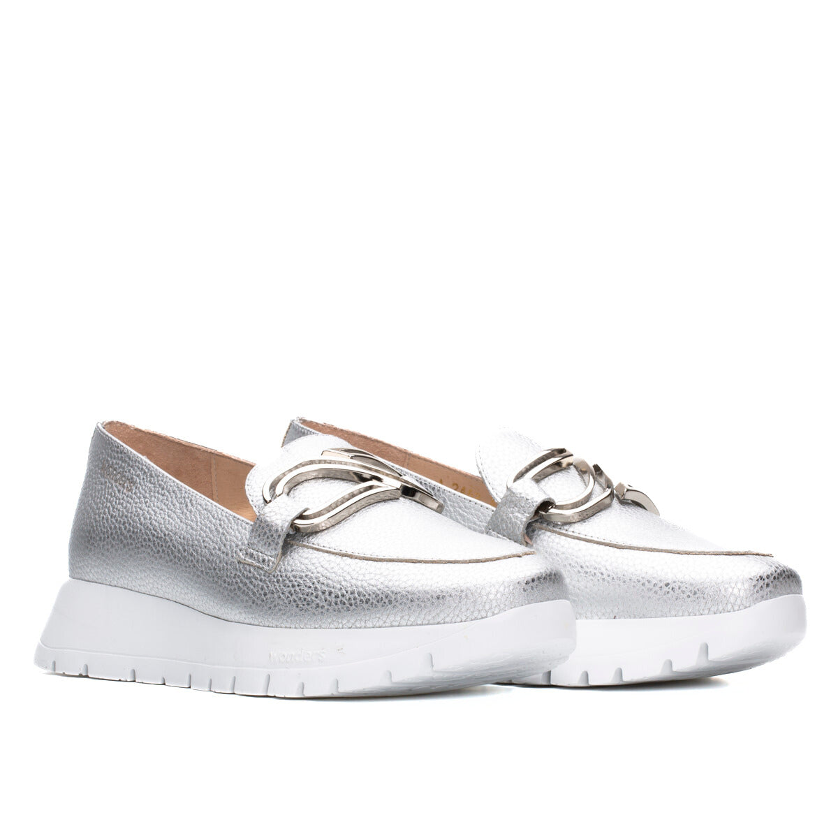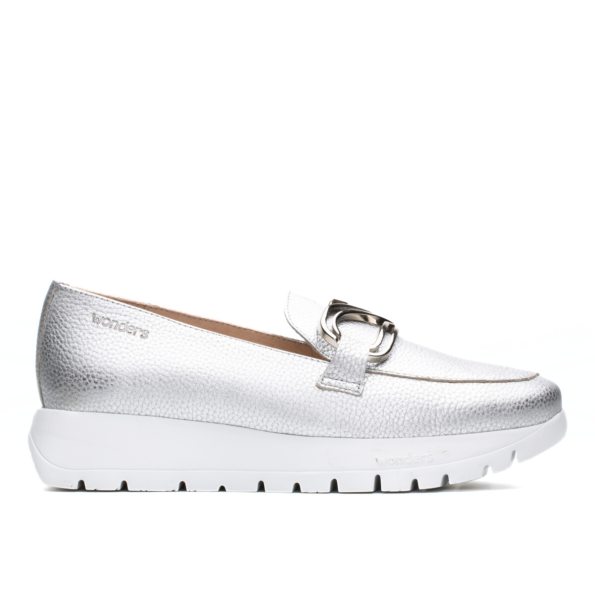 Introducing the AMALFI by Wonders—a timeless favourite known for its great fit, versatility, and cloud like comfort. Crafted from supple leather and featuring a chic metallic chain on the vamp, this ultra-lightweight platform loafer includes WondersFly technology and a removable memory gel insole. Perfect with tailored pants, dresses, or casual jeans, the AMALFI effortlessly elevates your look. Made with love in Spain.