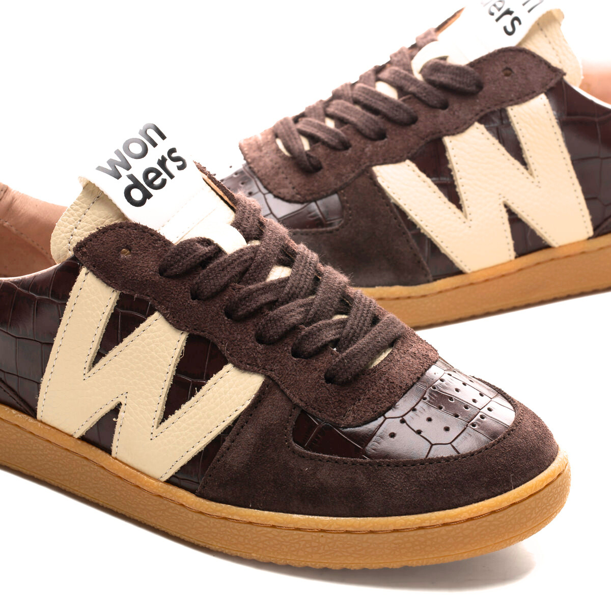 AMAYA by Wonders is a sleek, minimalist sneaker with croc-embossed leather panels, soft suede accents and a subtle metallic heel detail. Lightweight and set on a cushioned removable insole, it delivers exceptionally soft, all-day comfort in a clean, chic silhouette. A pair you’ll reach for on repeat. Made with love in Spain.