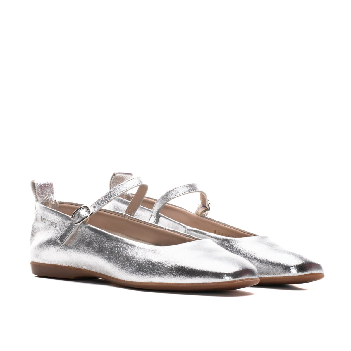 Amika by Wonders is a sleek leather Mary Jane with a softly tapered toe and adjustable silver buckle strap, designed for everyday comfort with a cushioned insole and flexible sole. Style it with tailored trousers, pleated skirts or cropped jeans for a polished, effortless look. Made with love in Spain.