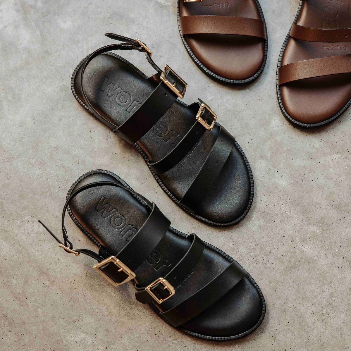 The Amour sandal by Wonders features sleek minimalist straps, bold gold buckles, and a refined flat profile for everyday ease, set on a cushioned Memory Gel footbed. Style it with cropped pants, wide-leg linen, or your favourite summer dress for an effortlessly polished look. Made with love in Spain.