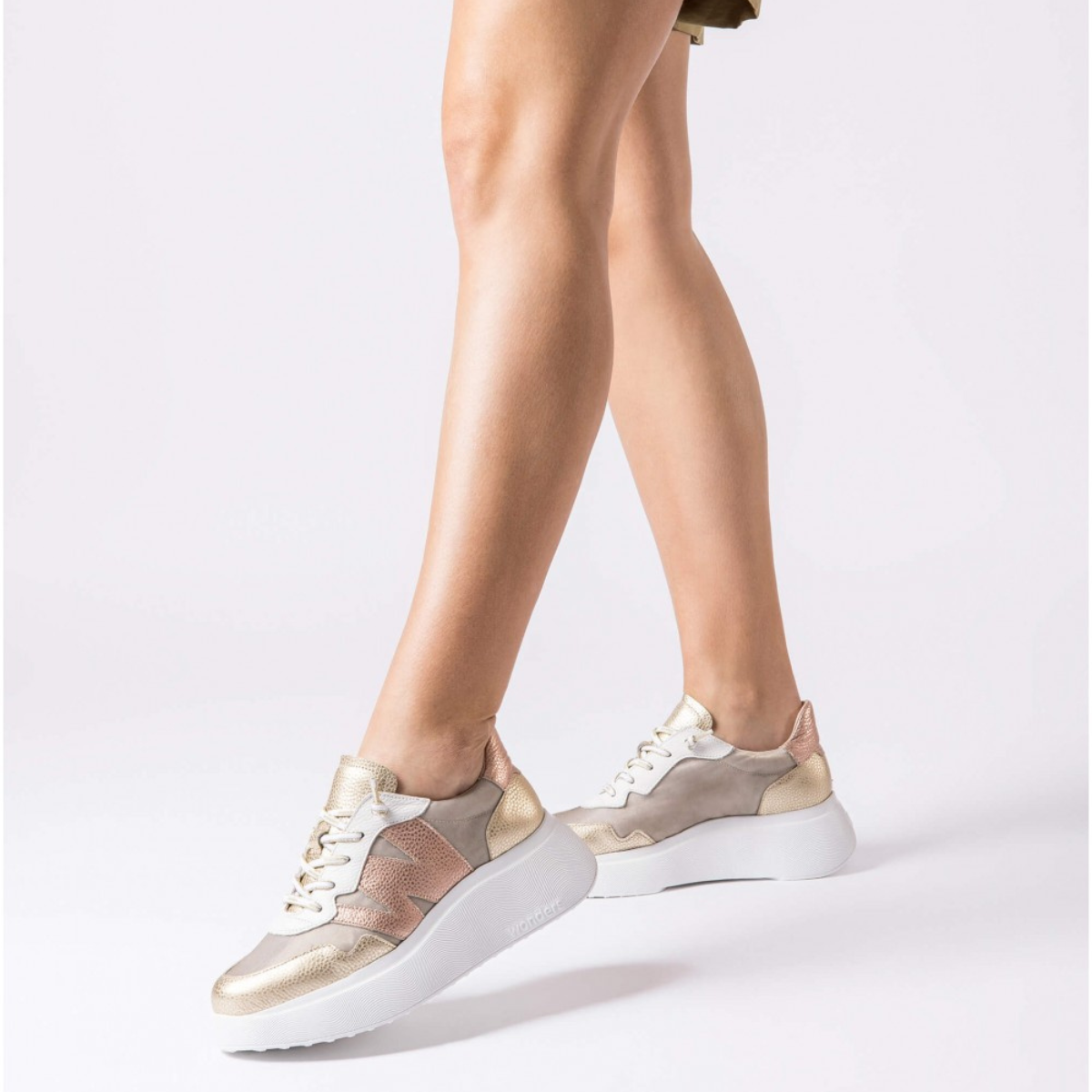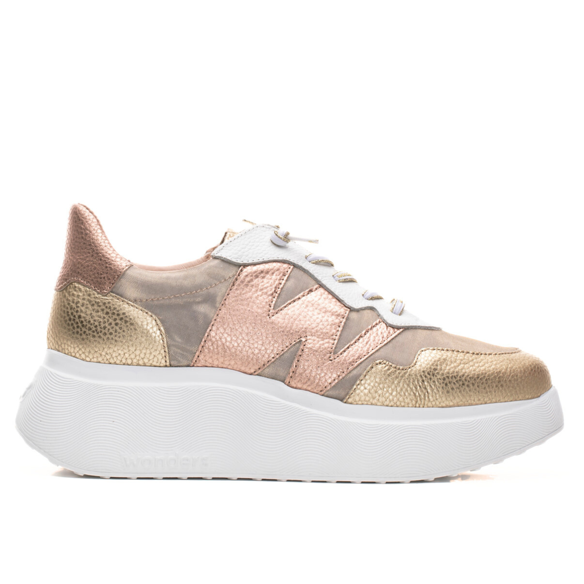 Arabia by Wonders is a standout sneaker that blends bold design with all-day comfort. Featuring metallic mesh panels, soft leather accents, elastic-style laces, and a cushioned Memory Gel footbed, it’s set on the ultra-light, bouncy WondersFly™ sole. Complete with a removable insole to accommodate orthotics, it’s the perfect mix of sporty and stylish. Made with love in Spain.