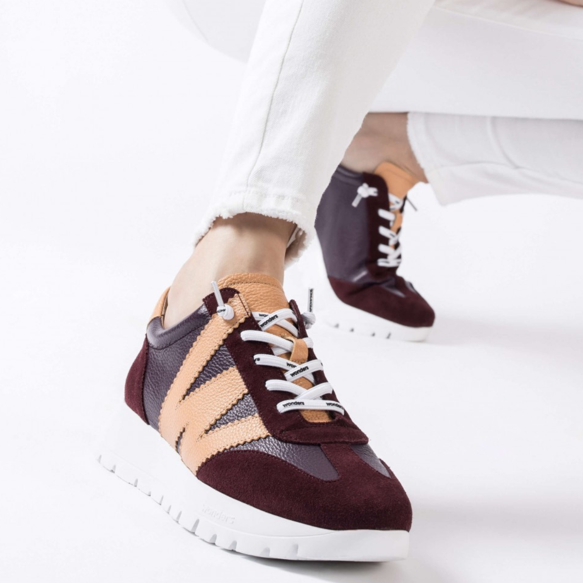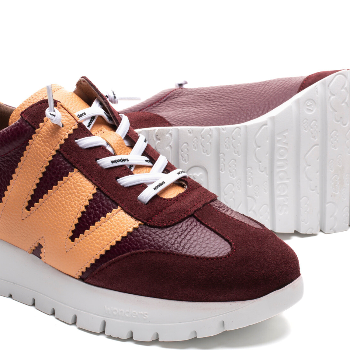 ARIES by Wonders is a trend-savvy sneaker that merges style and comfort with ease. Crafted in premium pebbled leather with suede accents, it flaunts a bold “W” design and a Wonders Fly® lightweight lug outsole, plus an elasticised lace-up closure for the perfect fit. Its sleek, versatile silhouette pairs effortlessly with jeans, trousers, or dresses, adding a sporty-chic touch to any outfit. Made with love in Spain.