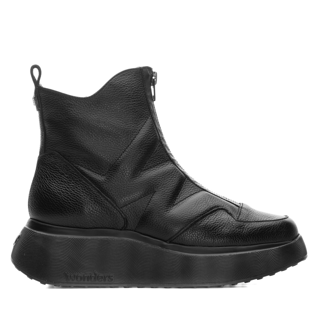 ASHLEY by Wonders is a versatile ankle boot crafted from premium pebbled leather for a sophisticated, textured finish. A sleek front zip with subtle branding and a convenient pull tab ensure easy wear, while the ultra lightweight Wonders Fly® sole delivers all-day comfort and a bold edge. Pair it with jeans, trousers, or midi skirts for an effortlessly polished look—perfect for both work and weekends. Made with love in Spain.