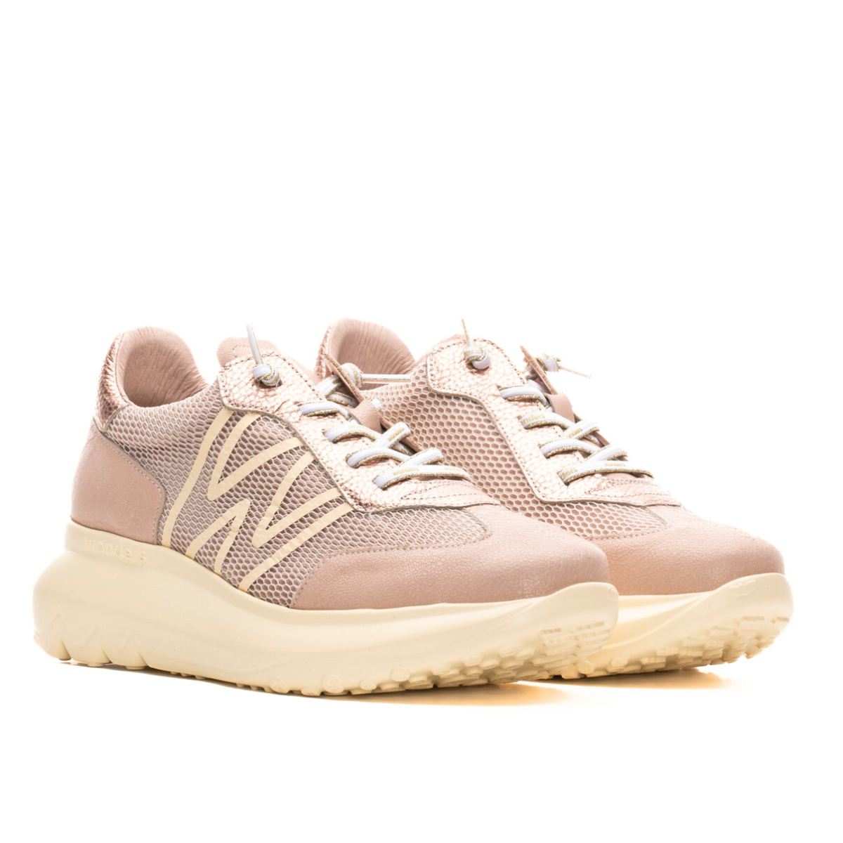 Meet Atlantic by Wonders – a bold, sporty sneaker built on the ultra-light WondersFly™ sole for next-level comfort. Featuring a breathable mesh upper with leather accents, elastic-style laces for easy slip-on wear, and a plush Memory Gel footbed, it’s made to keep up with your every move. Sporty, eye-catching, and effortlessly wearable. Made with love in Spain.