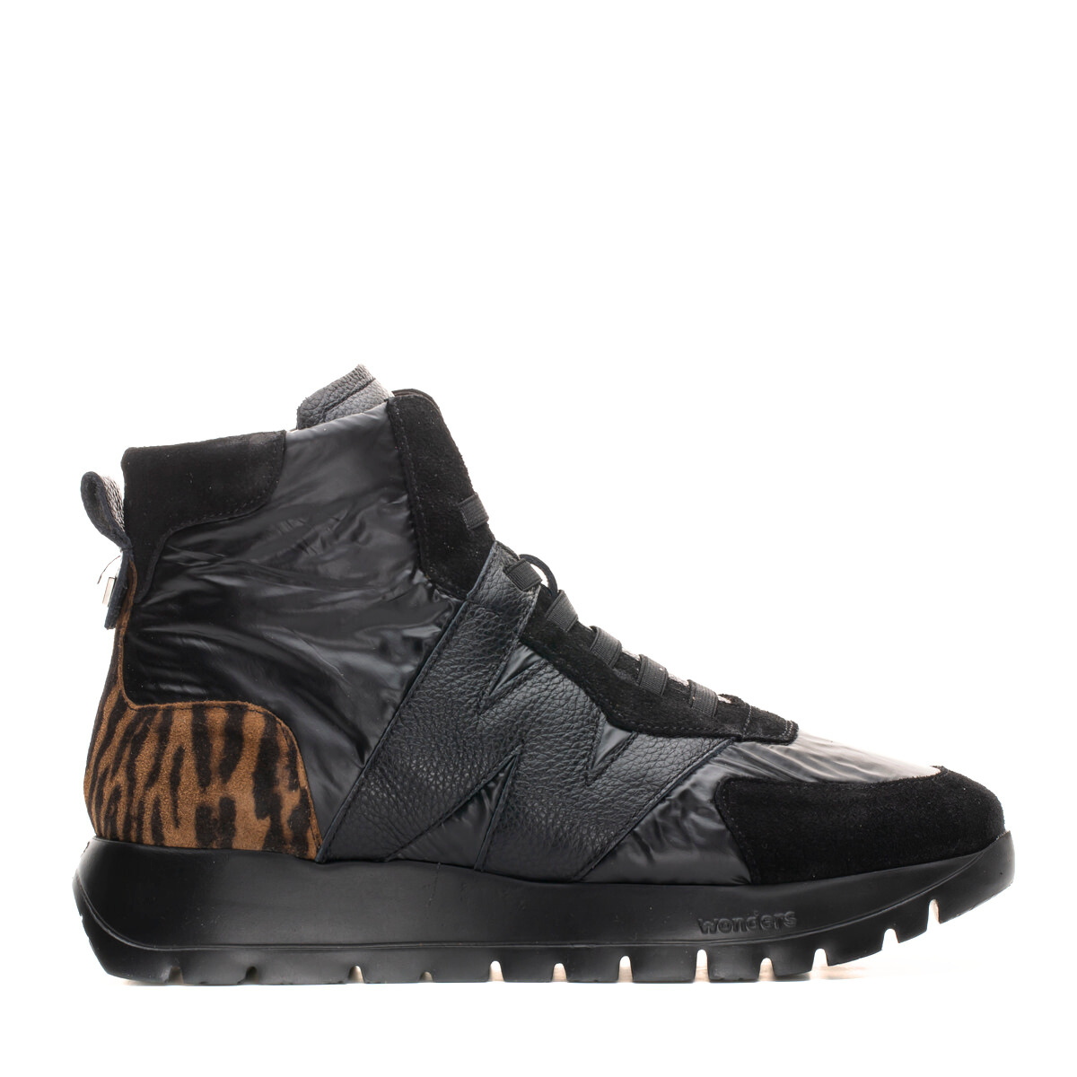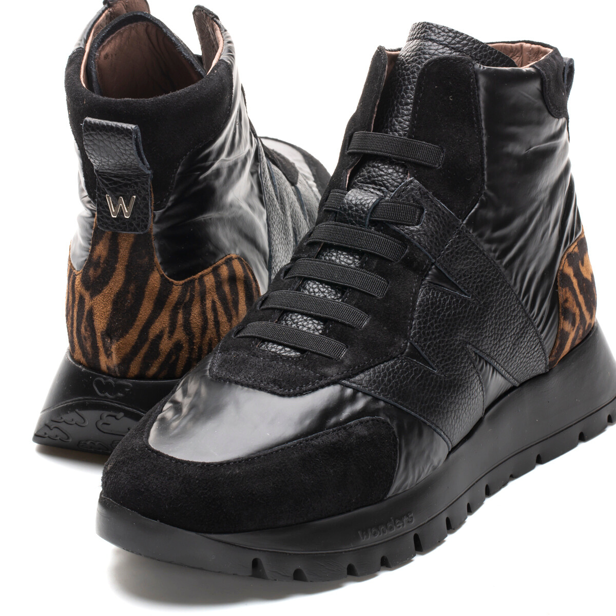 AXEL by Wonders is a cool, high-top sneaker that blends relaxed pull-on style with premium suede, textured leather, and striking leopard-print accents. Set on an ultra-light Wonders Fly® sole, it offers both comfort and effortless style. Versatile enough to pair with everything from jeans and joggers to dresses, AXEL is the perfect statement piece for any occasion, day or night. Made with love in Spain.