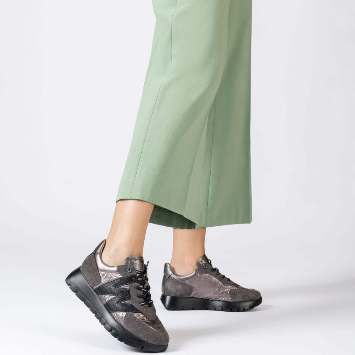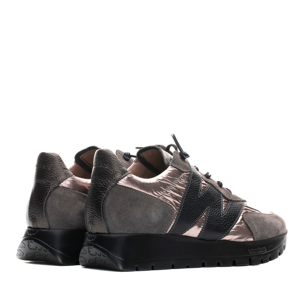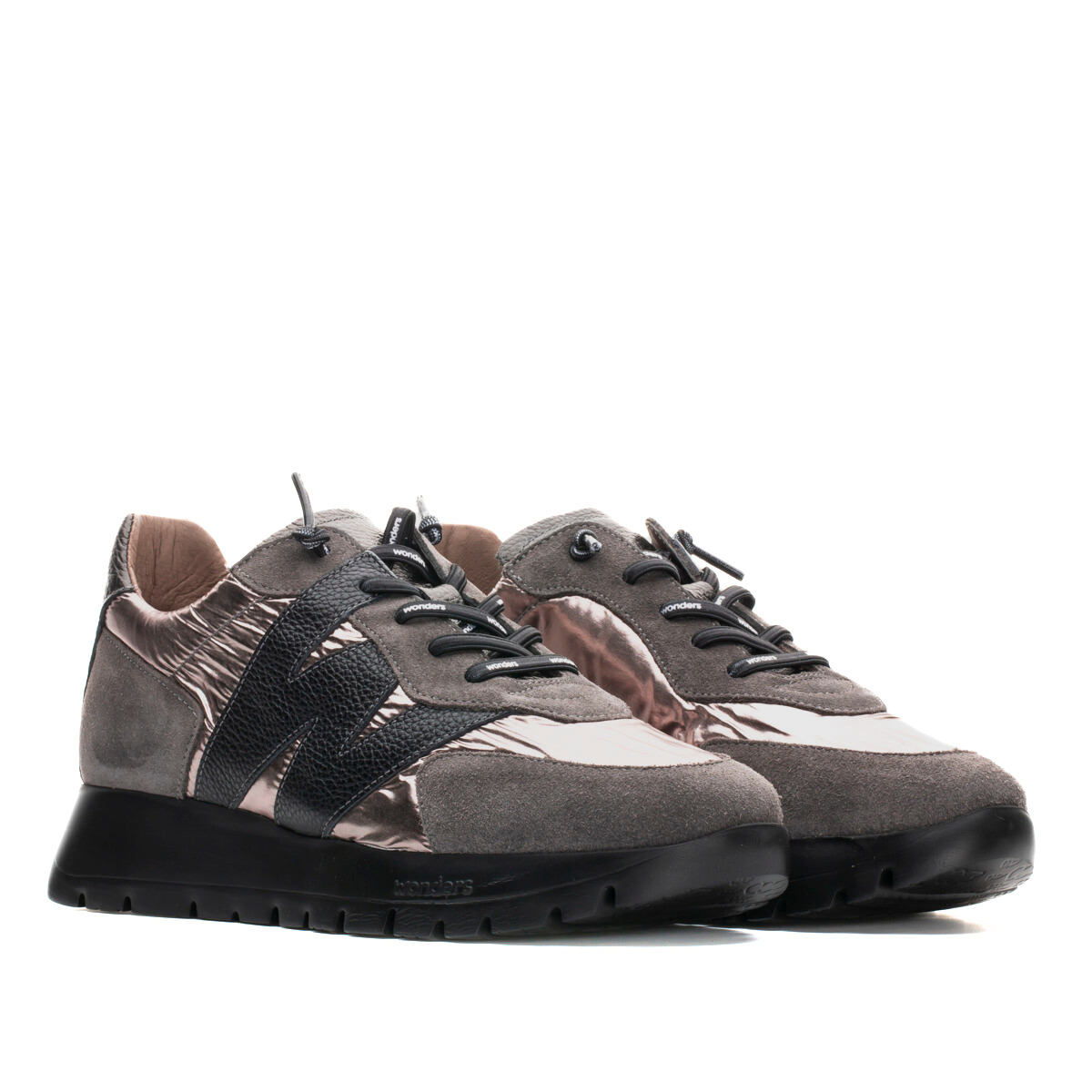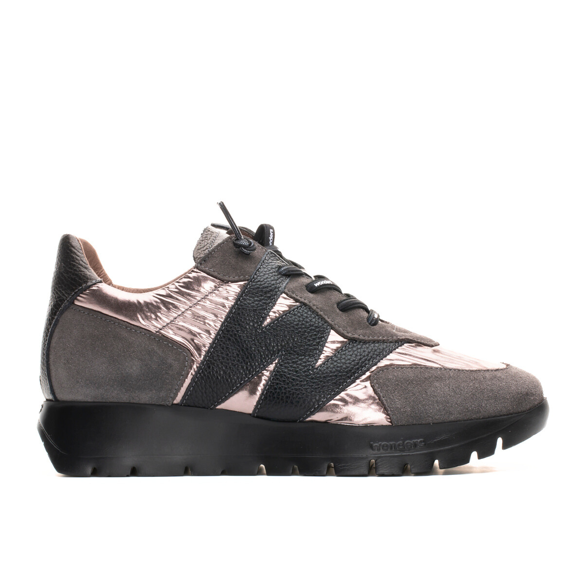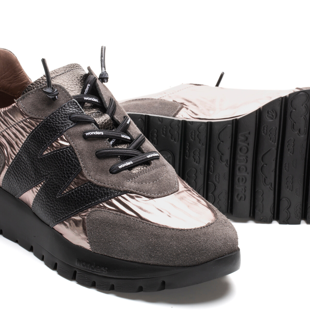 Elevate your style with the AZUMA sneaker by Wonders. Ultra-lightweight and designed for unmatched comfort, they feature a removable memory gel insole for orthotic support and elastic laces for a flawless fit. Crafted from a luxurious blend of suede, nylon, and metallic leather, AZUMA is chic sophistication. Perfect for any occasion, these sneakers pair effortlessly with jeans, dresses, skirts, or your favourite weekend outfits. Made with love in Spain.