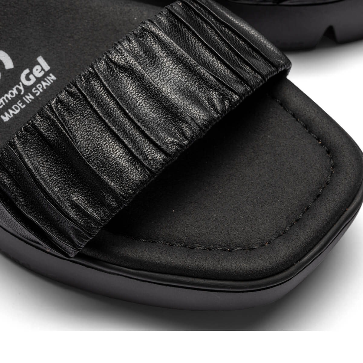 Versatile and chic, this sandal effortlessly transitions from casual to dressy, making it a must-have addition to your summer wardrobe. Featuring an elasticised rushed leather upper and an adjustable ankle strap offering a personalised fit. The platform sole developed with WondersFly™ technology provides stability and comfort for all-day wear. Made with love in Spain.
