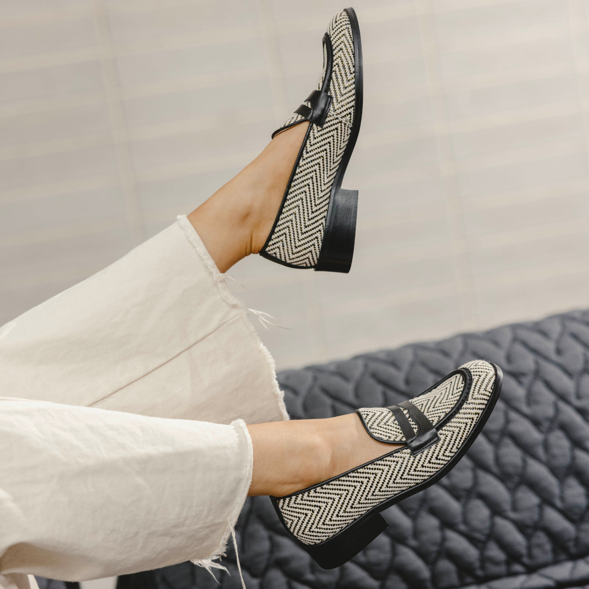 Step into sophistication with CARUSO by Wonders. This stylish textile loafer features a striking herringbone pattern and sleek leather accents. With a cushioned insole for all-day comfort, Caruso is perfect for pairing with tailored trousers, elegant skirts, or casual jeans. Made with love in Spain.