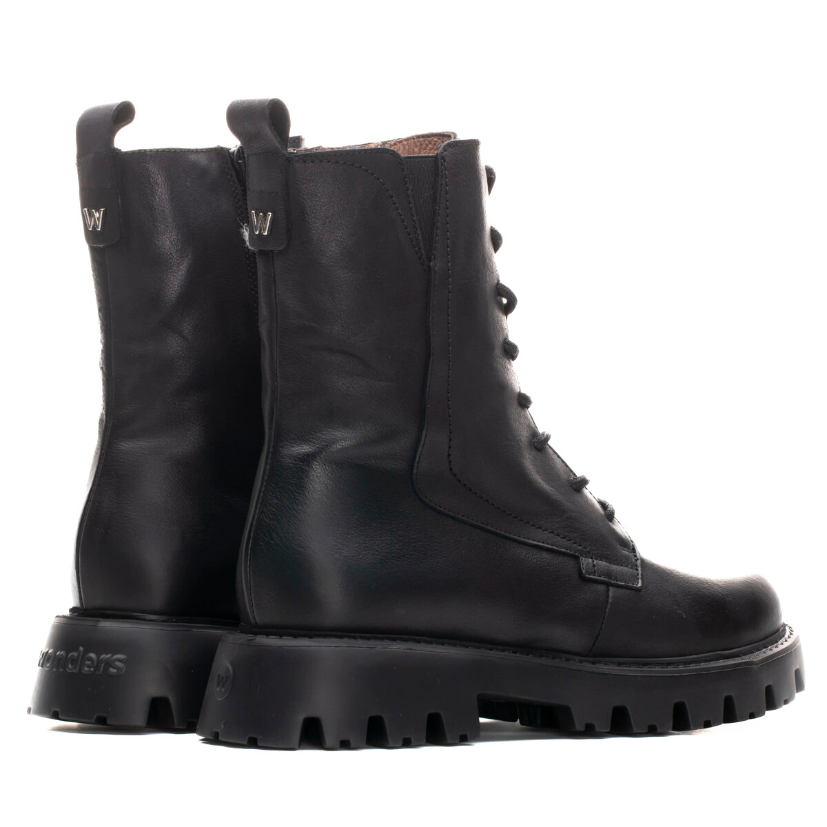 The CHASER boot by Wonders is a bold, stylish combat boot designed for both comfort and impact. Featuring a chunky rubber track sole with Wonders Fly® ultra-lightweight technology, it provides maximum support without sacrificing style. The side zipper ensures effortless wear, while the striking design adds an edge to any outfit. Pair it with skinny jeans or leggings for a bold look, or balance its rugged charm with flowy dresses or midi skirts. Made with love in Spain.