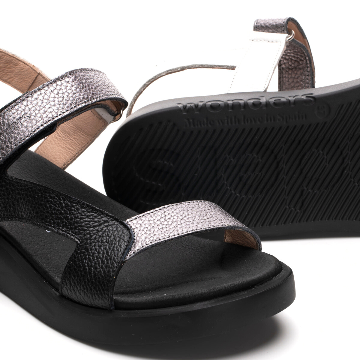 Meet Chica by Wonders — the effortlessly cool sandal you'll be reaching for every day. Crafted in Spain from buttery-soft pebbled leather, its three-tone straps bring just the right pop of colour to your look. A hidden Velcro fastening makes it easy to slip on and go, while the ultra-cushioned Memory Gel footbed and featherlight WondersFly™ sole keep every step cloud-soft. Made with love in Spain.