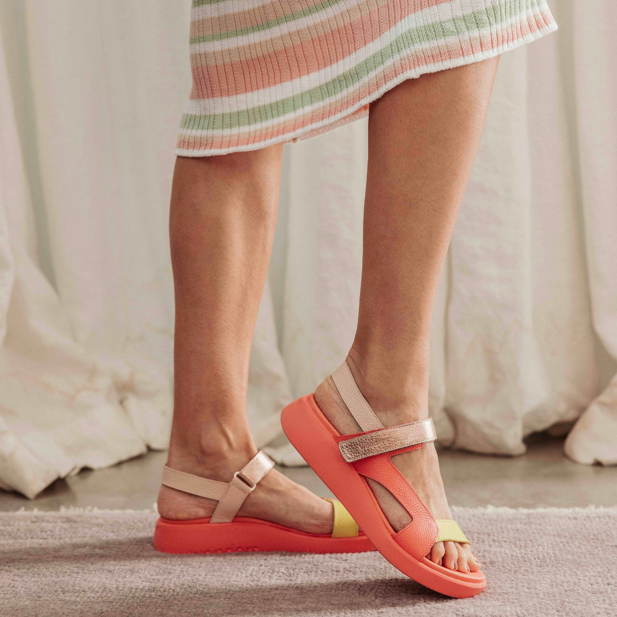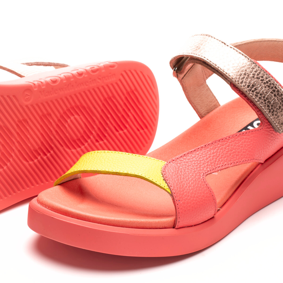 Meet Chica by Wonders — the effortlessly cool sandal you'll be reaching for every day. Crafted in Spain from buttery-soft pebbled leather, its three-tone straps bring just the right pop of colour to your look. A hidden Velcro fastening makes it easy to slip on and go, while the ultra-cushioned Memory Gel footbed and featherlight WondersFly™ sole keep every step cloud-soft. Made with love in Spain.