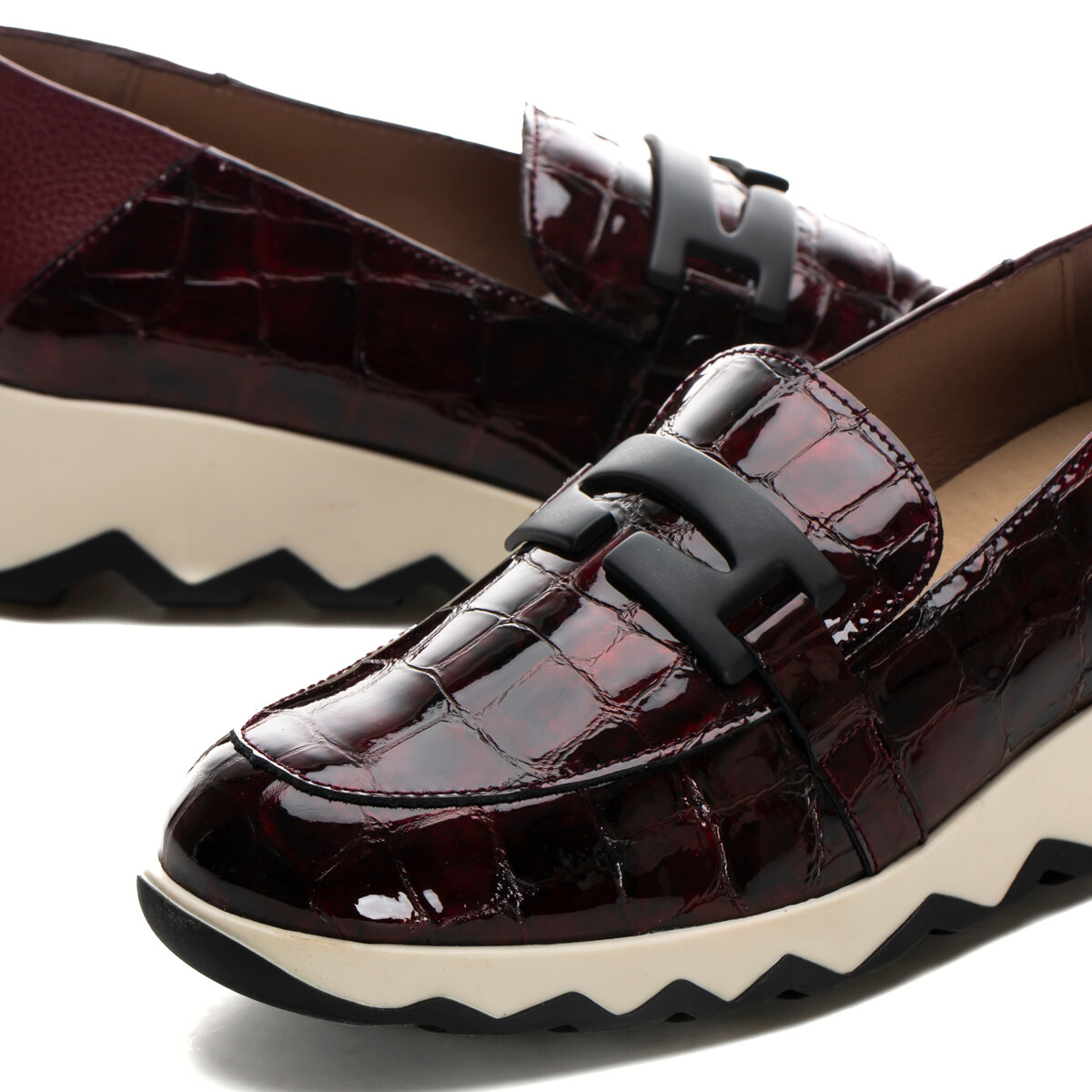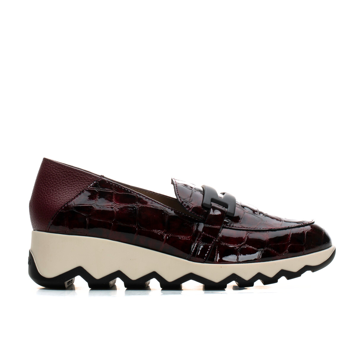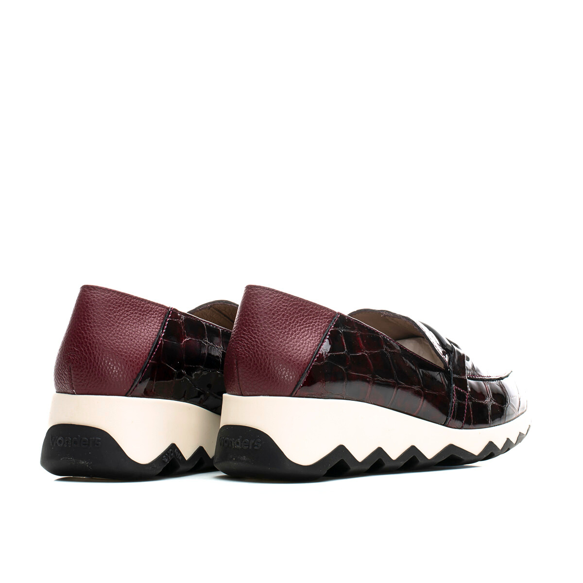 Sophisticated, playful and effortlessly comfortable — CLAUDIA by Wonders is a glossy croc-embossed loafer set on a lightweight sculptural wave sole for modern height and all-day ease. A fun, sporty-luxe twist on a classic silhouette. Easy with tailored pants, denim or a knit dress. Made with love in Spain.