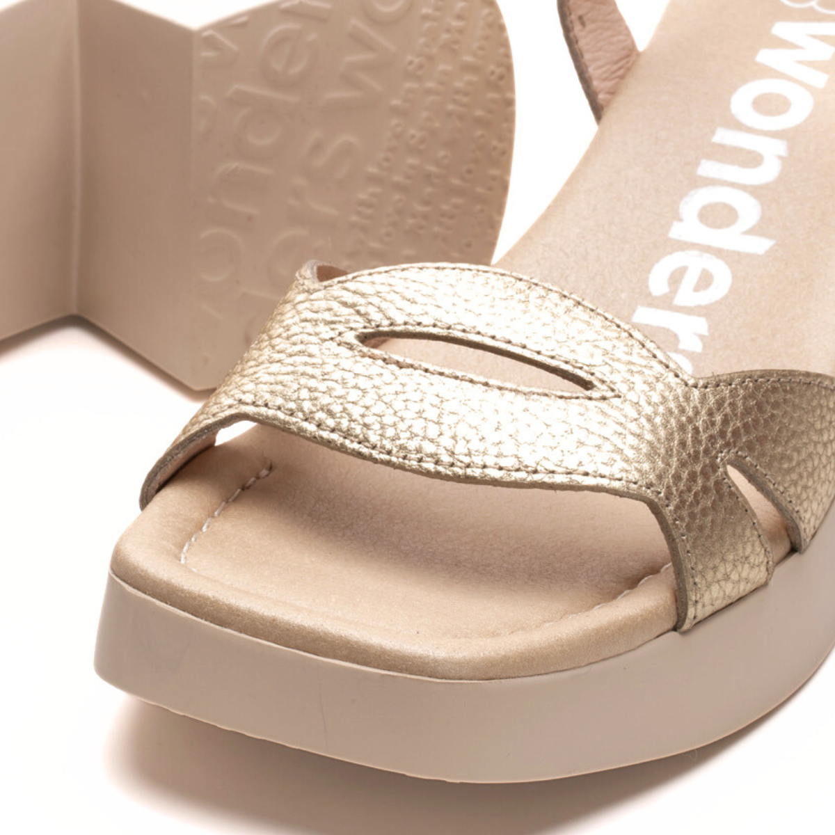 Dalai by Wonders is a sleek, modern sandal with a sculptural block heel and glossy textured leather straps. Designed with an adjustable ankle buckle and a cushioned Memory Gel footbed, it delivers both style and comfort in every step. Effortlessly chic, it pairs perfectly with summer dresses, wide-leg pants, or tailored shorts. Made with love in Spain.