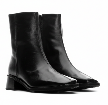 DESTINO by Wonders is a refined ankle boot crafted from smooth leather with a softly squared toe, low block heel and stitched front detail. Its clean, elegant silhouette makes it an easy everyday style to wear with denim, tailored pants, skirts or dresses. Made with love in Spain.