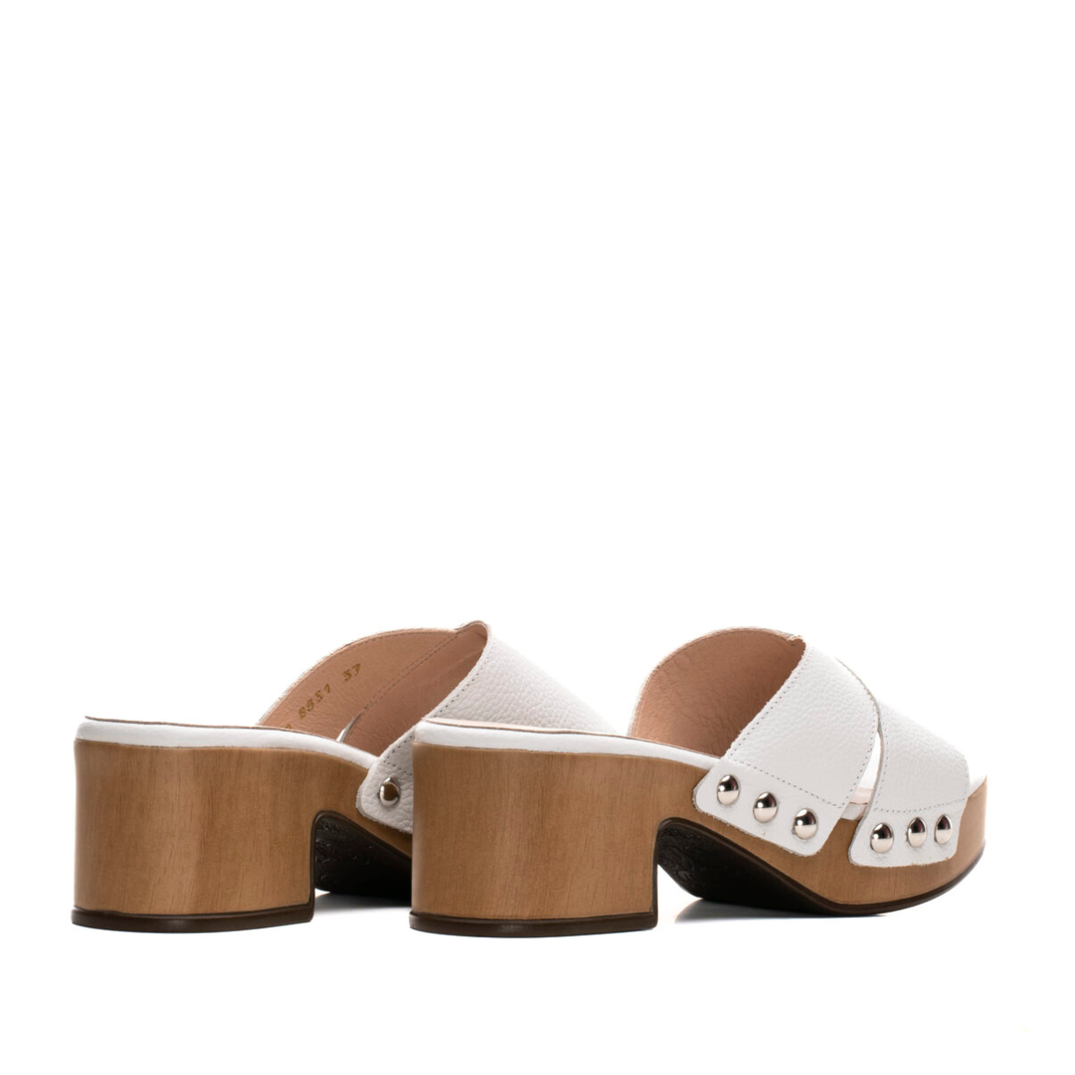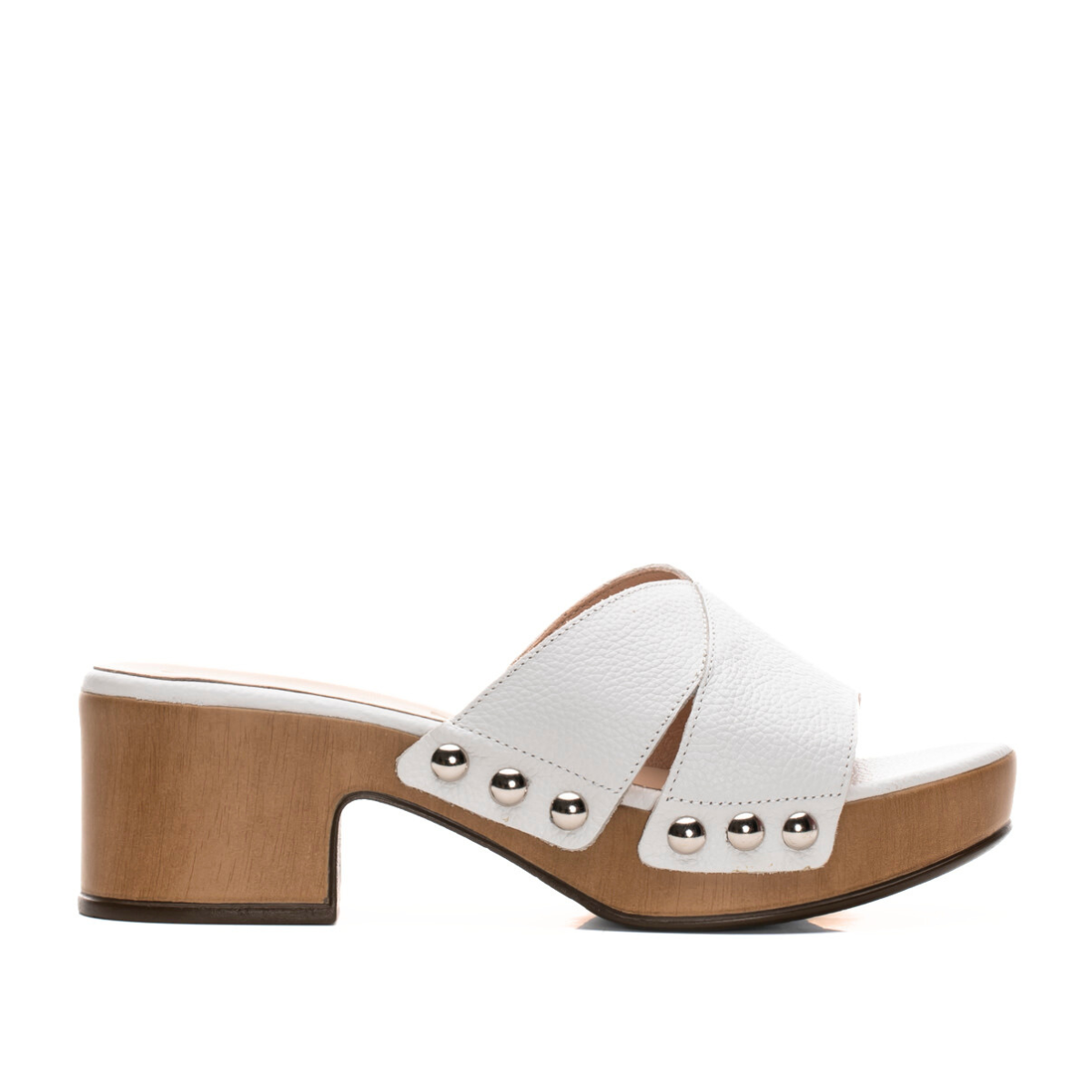 The Dion by Wonders is a fresh take on the classic clog, designed with soft pebbled leather crossover straps, silver stud accents, and a lightweight wood-look sole with the most comfortable block heel. This is a heel you can wear from day to night with ease — no break-in needed. Pair it with wide-leg jeans, linen trousers or a floaty skirt for that effortless off-duty look. Made with love in Spain.