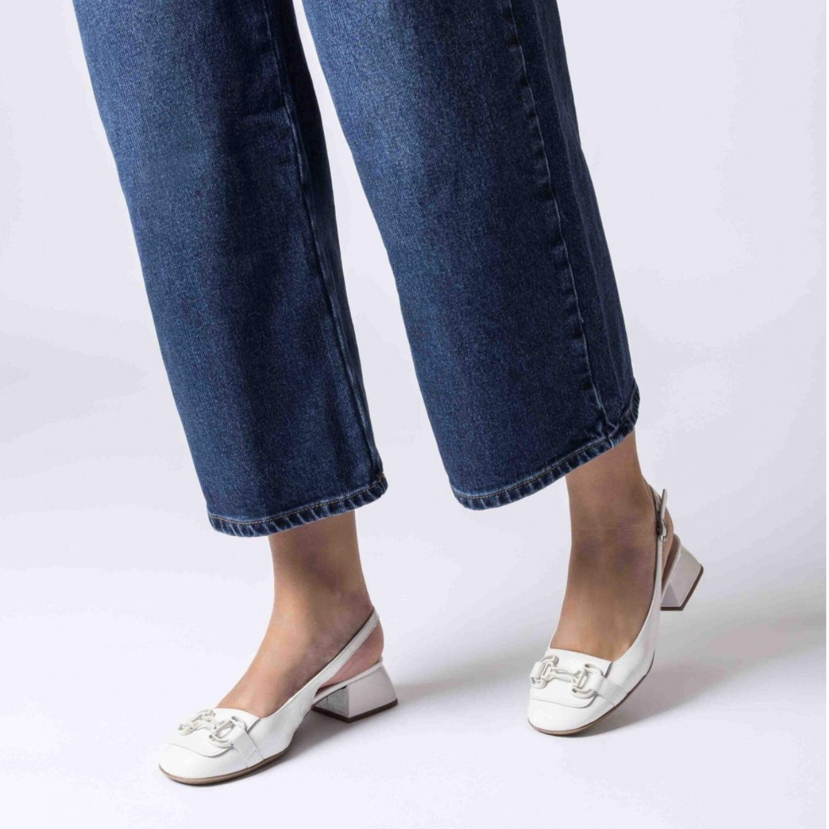 Dita by Wonders is a polished slingback that blends timeless charm with everyday comfort. Featuring glossy patent leather, a chic square toe with statement hardware, and a low block heel for effortless wear, it’s finished with a soft Memory Gel cushioned footbed and adjustable buckle strap. Perfect for pairing with tailored pants, midi skirts, or occasion-ready dresses. Made with love in Spain.