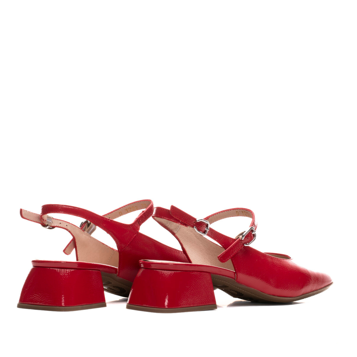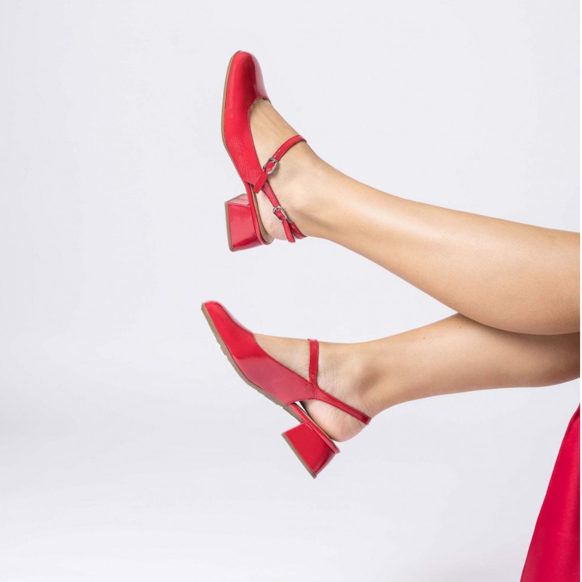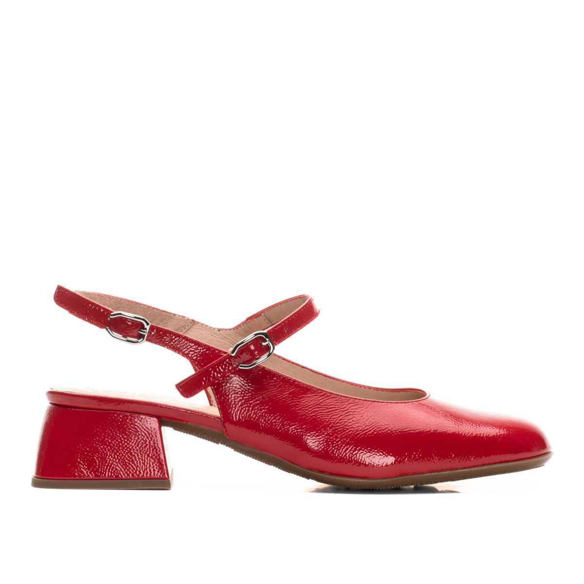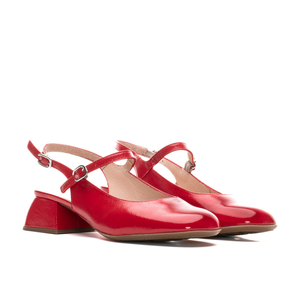 The Django shoe by Wonders is a retro-inspired slingback with a soft patent leather finish, delicate twin straps with buckle detail, a rounded toe, and a sculpted block heel for everyday elegance. Finished with a cushioned Memory Gel footbed for added comfort. Style it with cropped trousers, midi skirts, or a tailored jumpsuit. Made with love in Spain.