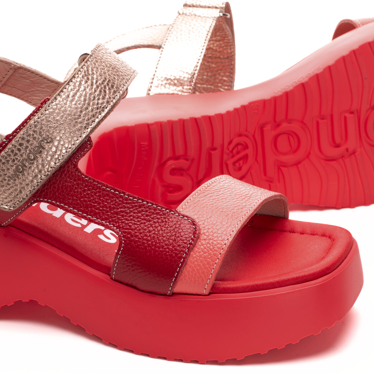 Dolci by Wonders is a fun, colour-blocked sandal that delivers standout style with incredible comfort. Crafted with multi-tone textured leather straps, it features an adjustable Velcro strap, a Memory Gel cushioned footbed, and an ultra-lightweight WondersFly™ sole for a soft, bouncy feel. Perfect for pairing with relaxed summer sets, wide-leg pants, or easy dresses. Made with love in Spain.