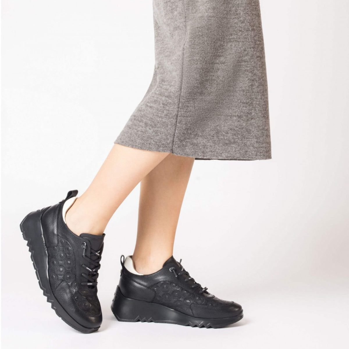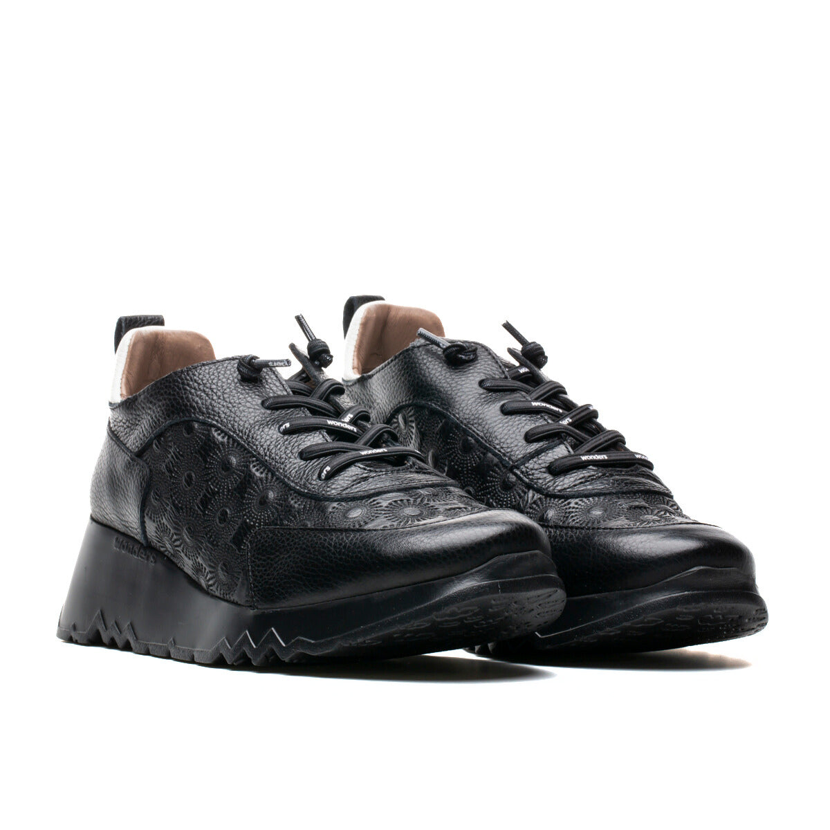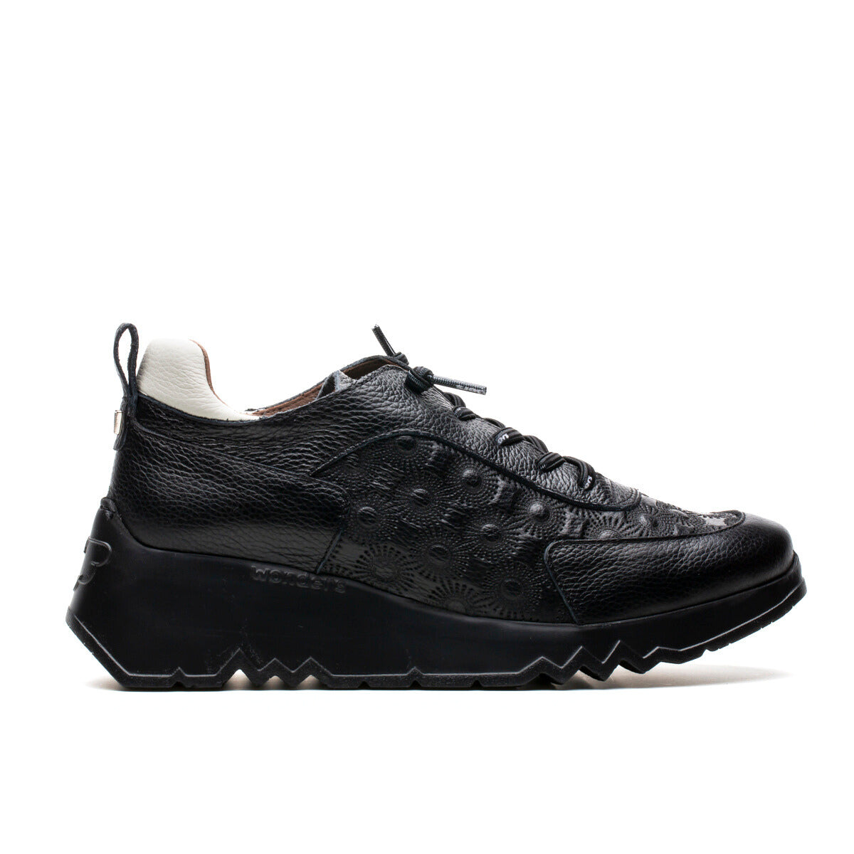 Experience urban style and unparalleled comfort with our embossed sneaker by Wonders. Boasting elasticised shoelaces for convenience, this trainer is designed with a removable MemoryGel insole, catering to orthotic needs. The padded back with a pull tab adds functionality to fashion. The serrated sole, developed with WondersFly™ technology, ensures both lightness and comfort. Made with love in Spain.