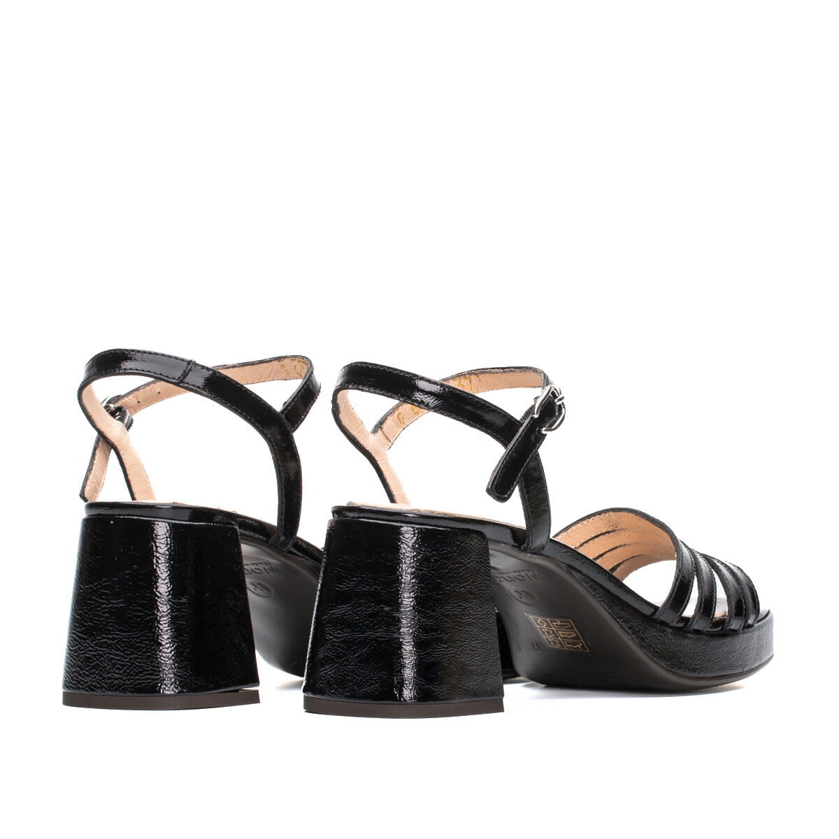 Step into luxury with GOLDEN by Wonders. These heels feature a statement block heel, a comfortable platform, and an adjustable ankle strap. With a memory gel cushioned insole, they ensure all-day comfort. Perfect with evening wear, cocktail dresses, or tailored jeans. Made with love in Spain.