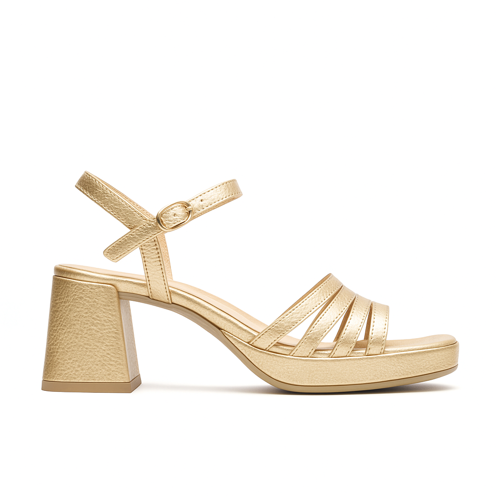 Step into luxury with GOLDEN by Wonders. These heels feature a statement block heel, a comfortable platform, and an adjustable ankle strap. With a memory gel cushioned insole, they ensure all-day comfort. Perfect with evening wear, cocktail dresses, or tailored jeans. Made with love in Spain.