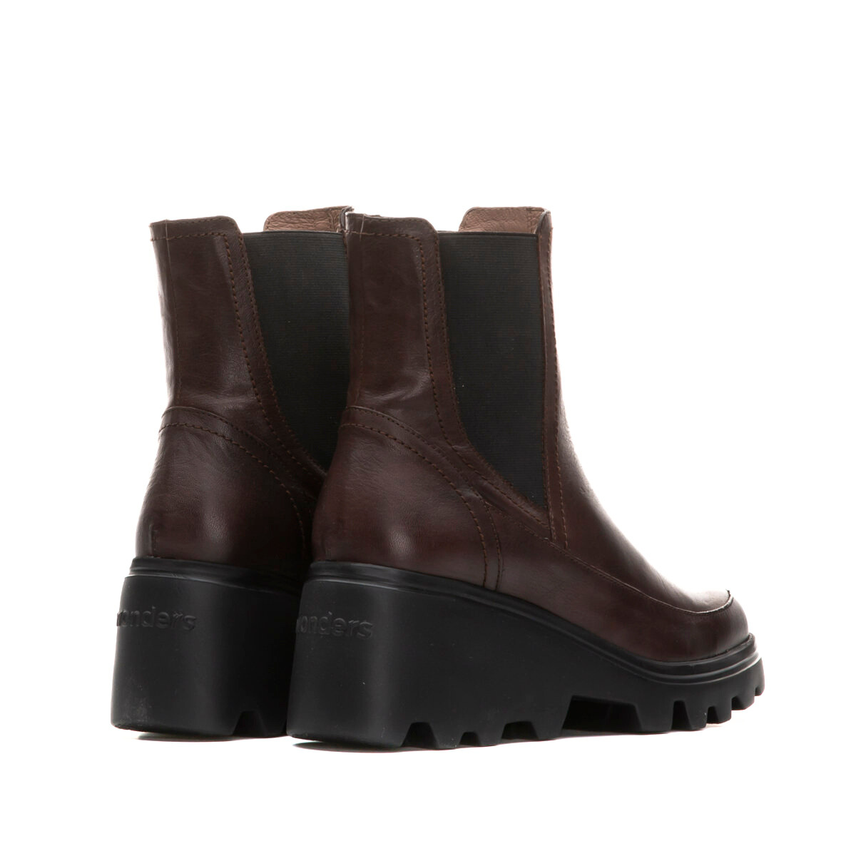 GRETCHEN by Wonders is a modern take on the classic Chelsea boot, enhanced with Wonders Fly® lightweight technology for exceptional comfort and support. Crafted from premium leather, it features elastic side panels for easy slip-on styling, while the bold lugged outsole adds a contemporary edge. Versatile and stylish, these boots pair perfectly with skinny jeans and oversized knits for casual days, or with tailored trousers and longline coats for a chic, urban look. Made with love in Spain.