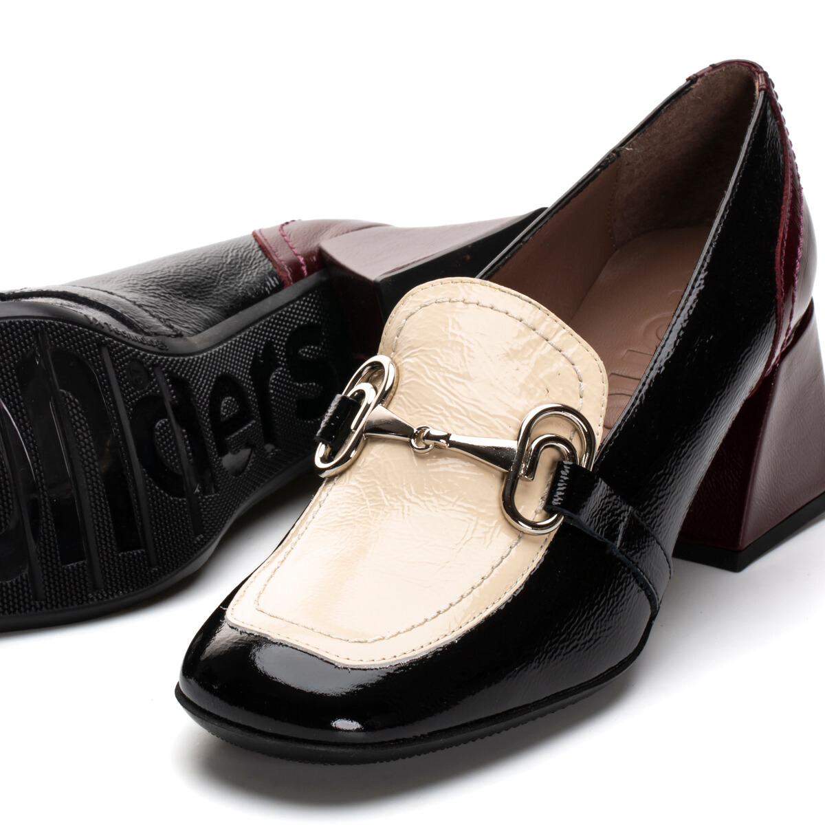 HACKETT by Wonders is a bold, colour-blocked loafer with glossy patent finishes and statement hardware, giving you a striking blend of modern flair and timeless charm. A sculpted block heel elevates the look, while the memory gel-cushioned footbed and flexible rubber outsole keep you comfortable from day to night. Pair it with tailored trousers or a flowy midi skirt for an instant style statement. Made with love in Spain.