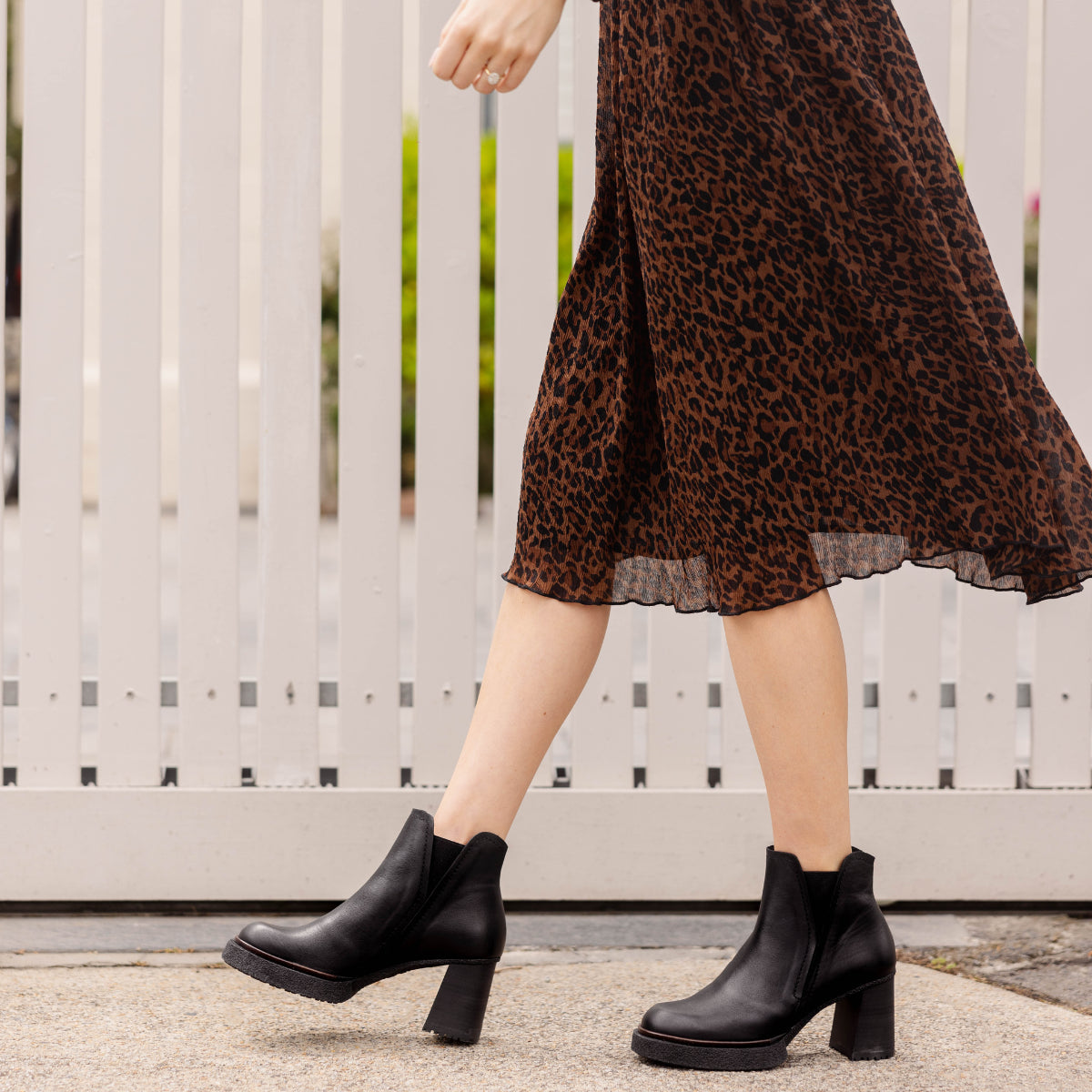 This striking ankle boot by Wonders is ideal for a creative workplace or a night out on the town. With a generous square-cut toe-box and a rubber crepe outsole, it offers the perfect blend of style and comfort. Made with love in Spain.