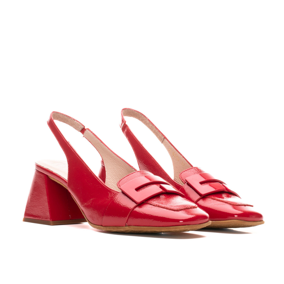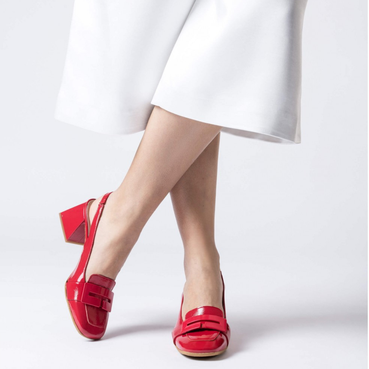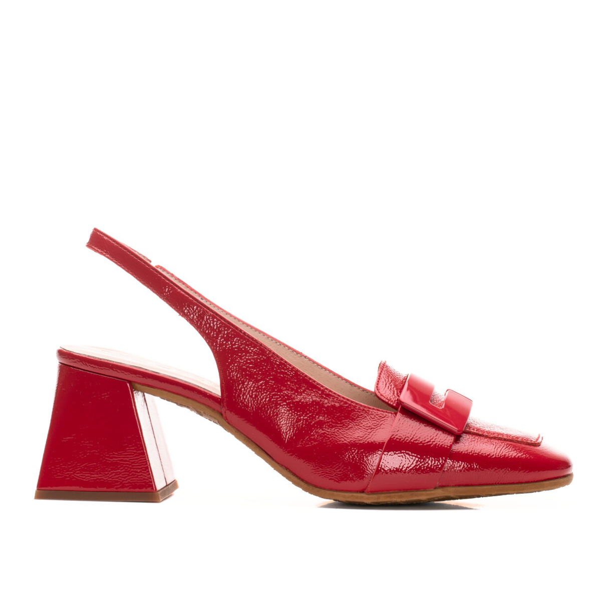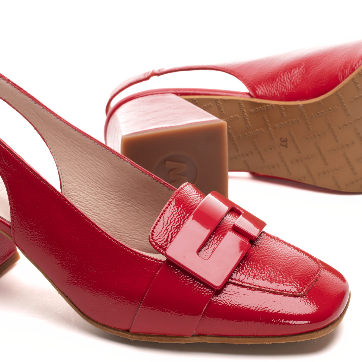 The Haines heel by Wonders is a sleek slingback that blends classic elegance with a modern edge. Crafted in glossy patent leather, it features a square toe, sculptural block heel, and a bold tonal buckle that makes a statement. With a cushioned Memory Gel footbed for all-day comfort, Hanes is perfect for elevating everything from sharp tailoring to midi dresses and cropped pants. Made with love in Spain.