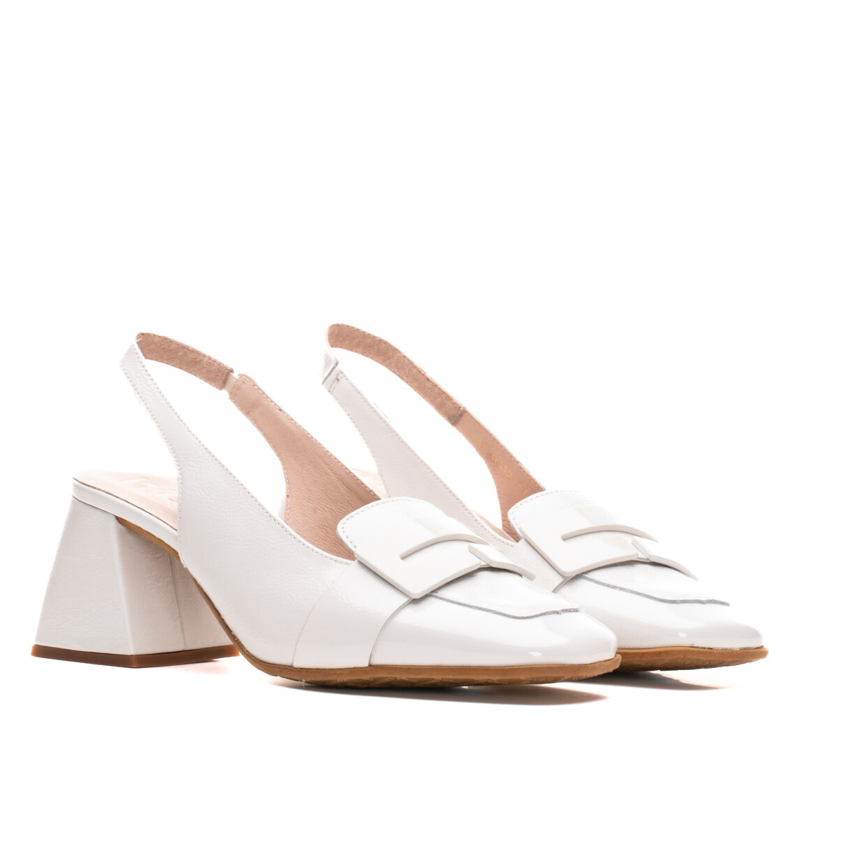 The Haines heel by Wonders is a sleek slingback that blends classic elegance with a modern edge. Crafted in glossy patent leather, it features a square toe, sculptural block heel, and a bold tonal buckle that makes a statement. With a cushioned Memory Gel footbed for all-day comfort, Haines is perfect for elevating everything from sharp tailoring to midi dresses and cropped pants. Made with love in Spain.