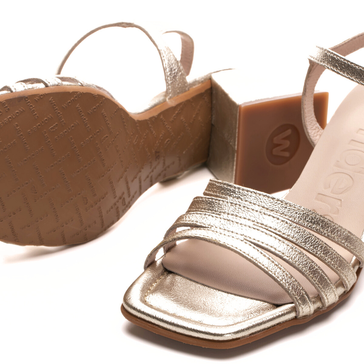 The Hanley sandal by Wonders is a go-to mid heel designed for everyday elegance, crafted in soft leather with delicate pleated-style straps, an adjustable ankle buckle, and a modern flared block heel. Finished with a cushioned Memory Gel footbed for comfort that lasts from day to night. Made with love in Spain.