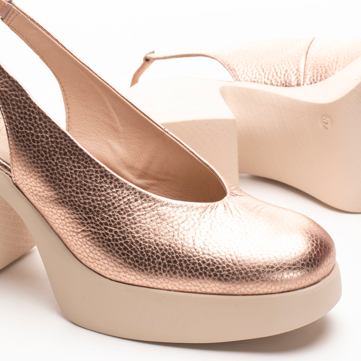 The Hatch shoe by Wonders is a bold, sculptural slingback crafted in supple leather, featuring a sleek rounded toe and a dramatic block heel with a platform base. Built on an ultra-lightweight WondersFly™ rubber sole and finished with a cushioned Memory Gel footbed, it delivers exceptional comfort you’ll feel from the very first step. Style it with wide-leg pants, midi skirts, or modern suiting. Made with love in Spain.