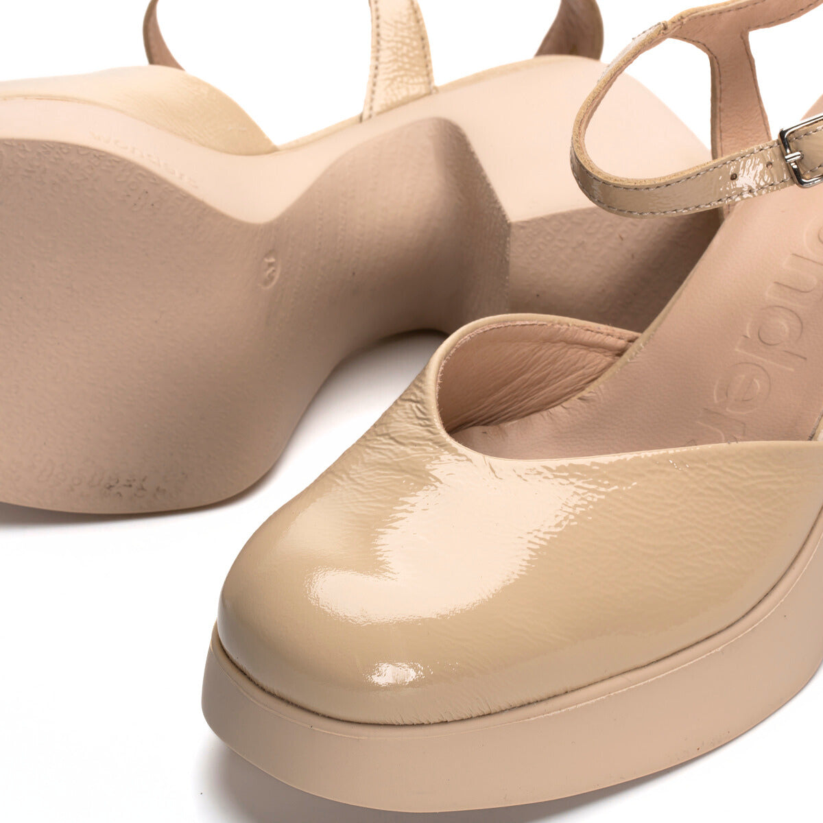 Discover the HYDRA by Wonders—the perfect blend of chic design and comfort. With a glossy patent leather upper and adjustable ankle strap, these shoes ensure a perfect fit. Built on our ultra-lightweight Wonders Fly unit, they offer all-day comfort. Pair them with skirts or dresses for a relaxed boho vibe, or with tailored pieces for a sophisticated touch. Made with love in Spain.