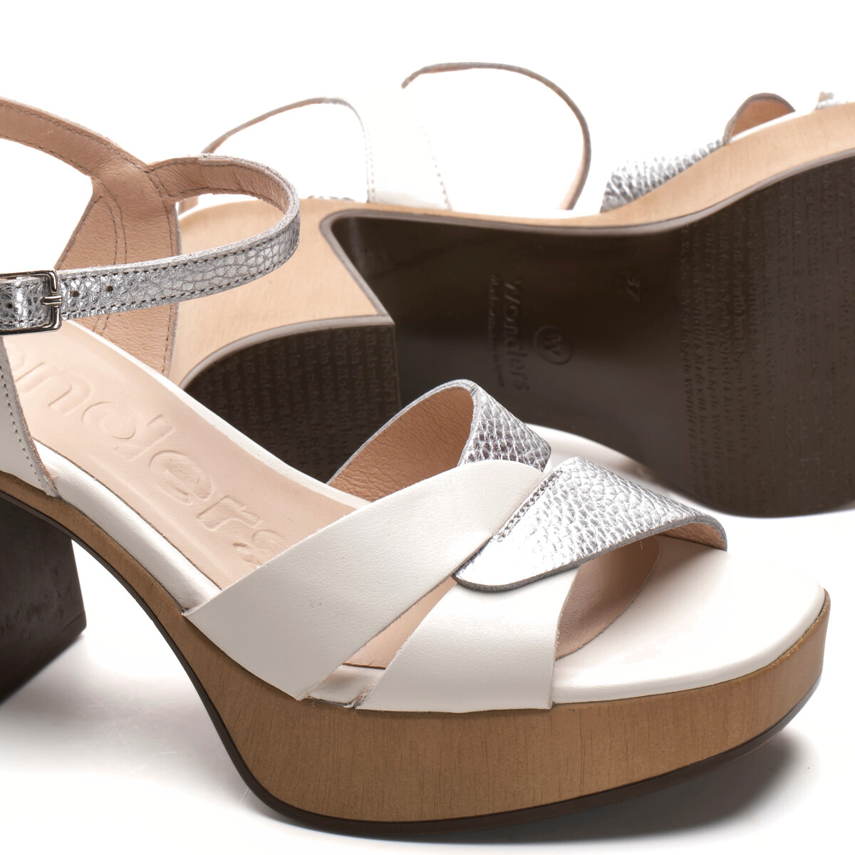 The Legacy heel by Wonders is a striking platform sandal featuring soft criss-cross leather straps in a two-tone finish, an adjustable ankle buckle, and a chunky flared block heel. Designed with a Memory Gel footbed for superior comfort, it’s the perfect choice for pairing with flowing dresses, linen sets, or tailored pants. Made with love in Spain.