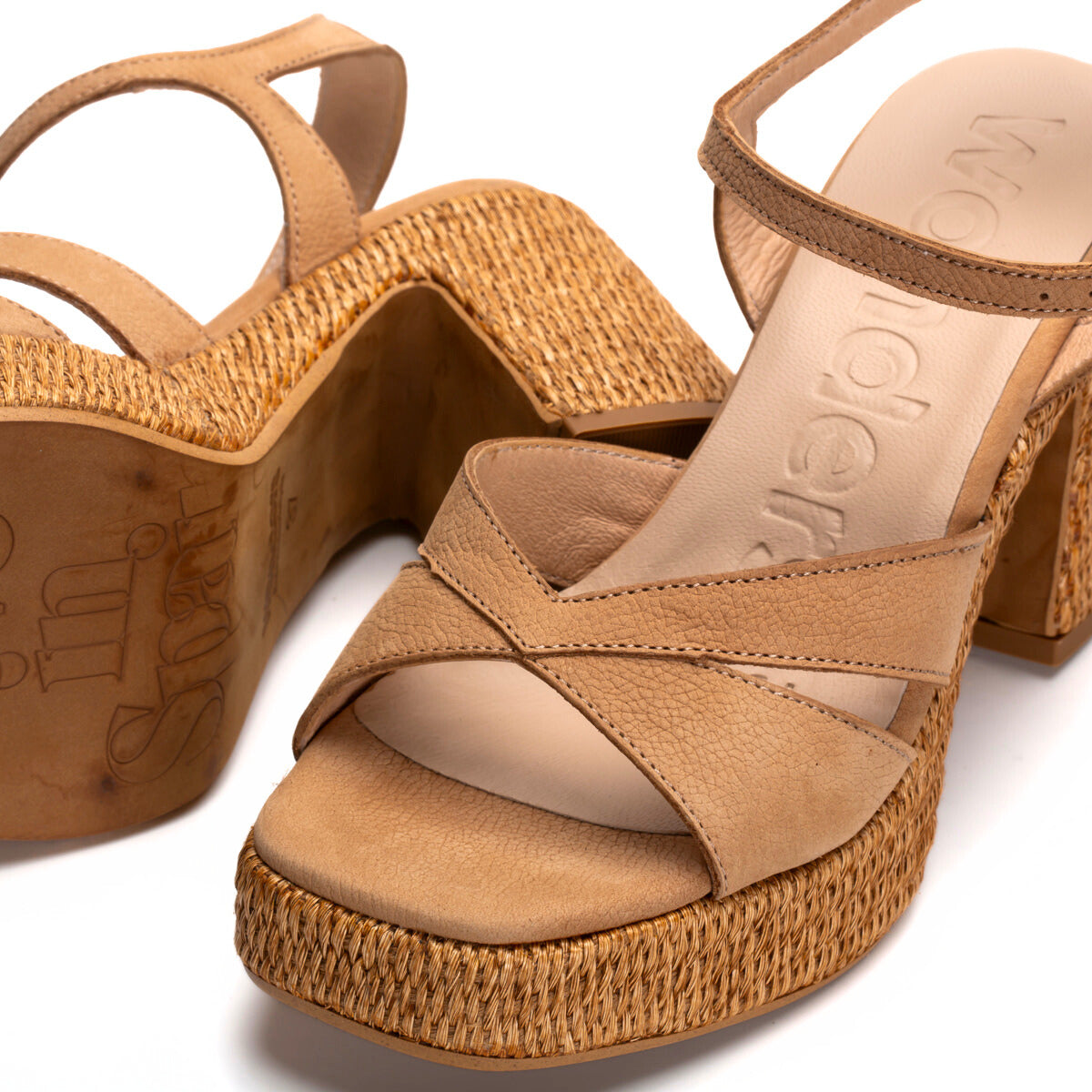 A real standout this season, the LUCILLE by Wonders. These stunning sandals showcase a suede upper, a natural rattan block heel and platform, and an adjustable ankle strap. The memory gel cushioned footbed and ultra-lightweight construction ensure exceptional comfort. Perfectly paired with summer dresses or tailored pants, the Lucille offers unmatched style and comfort for your wardrobe. Made with love in Spain.